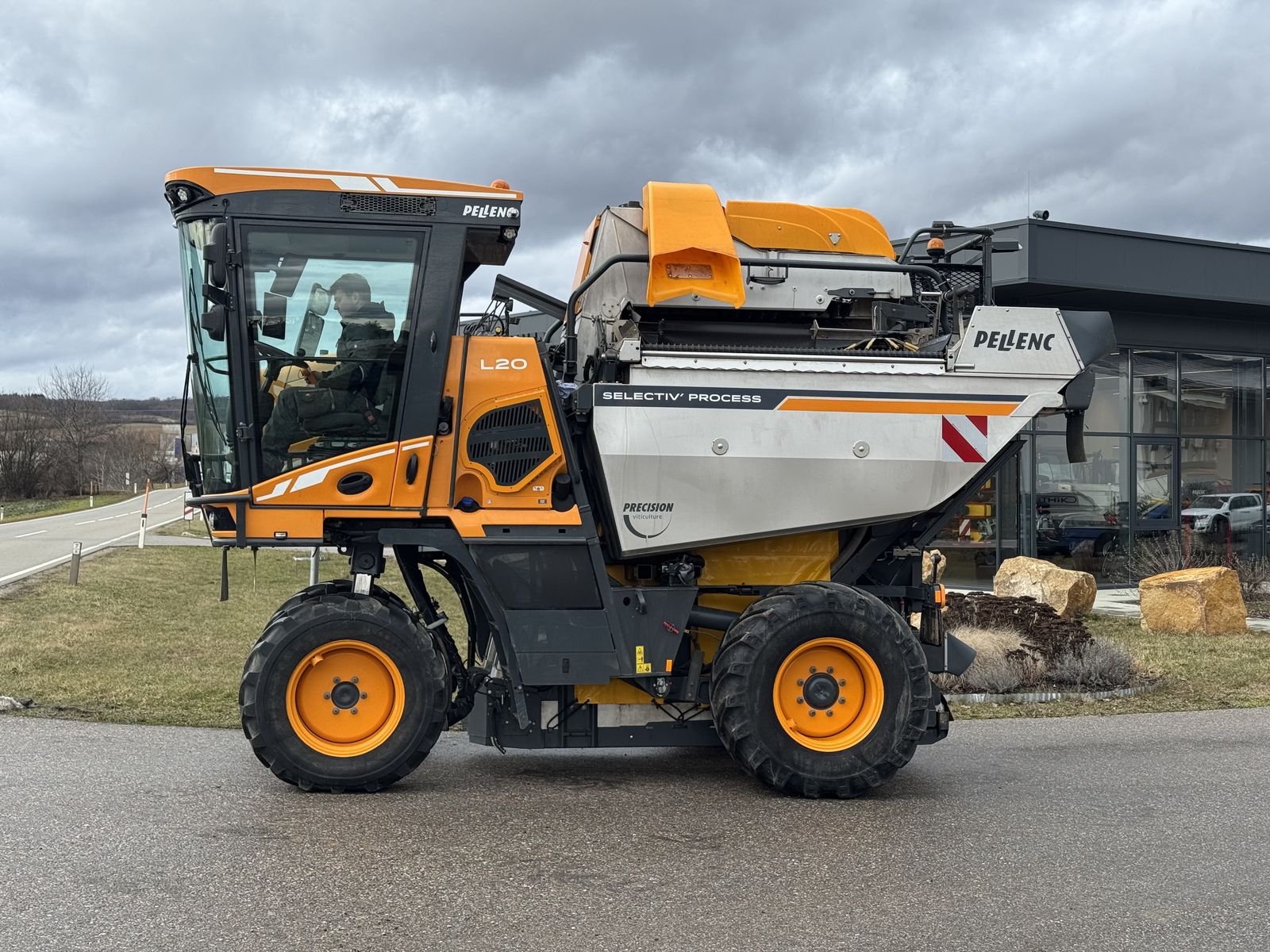 Perkinsmotor 4 Zylinder 4400 ccm, 175 PS, Stufe 5 174 Liter Kraftstofftank Vorderräder 400/70 R24 Hinterräder 500/70R24 Easy Power automatische Motordrehzahlregelung TPI 2 permanenter Allradantrieb "Easy Turn" Lenkeinschlag 95° Geräuscharme, klimatisierte Kabine ROPS4 "Easy Drive" innenbeleuchteter, multifunktionaler Joystick "Easy Touch" Bedienpult 10,4" intuitiv bedienbar Drei Höhenanschläge, zwei davon frei einstellbar Automatische Parkbremse Hydraulische Trommelbremse auf Vorderräder 2 elektrisch einstellbare Panoramarückspiegel 12 Scheinwerfer, davon zwei Kurvenlichter 2 Farbbildkameras mit Nachtsichtfunktion Pellenc Connect Telemetriesystem (Wiegesystem Nachrüstbar) 360° Kamera Erntekopf L Selectiv' Process 2: "Easy Smart" Niederfrequenz-Schüttelsystem mit Bedienung aus der Kabine Zusammengefasste Schmierung des Schüttelwerkes auf 2 Leisten mit je 4 Schmiernippel Leseguttransport mit flexiblem Gitter- Becherband mit automatischer Spannvorrichtung Sicherheitsbandstopper und Bandumkehrlauf Vibrierende Rinne 2 höhenverstellbare, untere Gebläse Rückwärtskamera mit Nachtsichteinrichtung Behälter- Füllstandanzeige Vorwärts- und rückwärtslaufende Behälterschnecken Reinigungsfernsteuerung "Easy Save Wash" Behältervolumen 3.200 Liter Sortiertischverteiler Oberes Gebläse SP2 Pfahldämpfer Pfahlerkennung Magnet-Satz Funkfernbedienung
