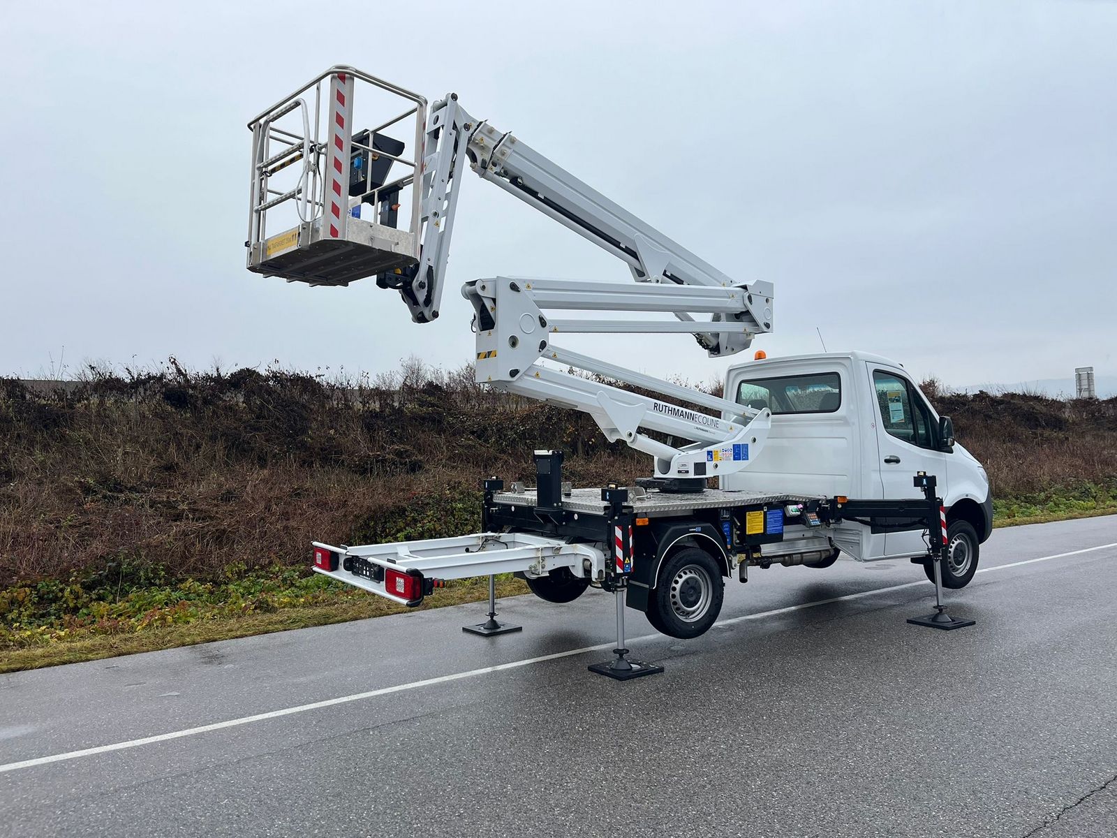Arbeitshöhe 20,00 m Gesamtlänge 7,60 m Hubhöhe 18,00 m Gesamthöhe 2,50 m Seitliche Reichweite 10,50 m Führerschein Klasse B / 3,5t Schwenkbereich 360° KM-Stand 75 km Arbeitskorblast 250 kg Betriebsstunden 8 h Zusätzliche Ausstattung 4 x Kunststoff-Unterlegplatten Betriebsstundenzähler Einfahrautomatik Erweiterter Schwenkbereich 2x220° Arbeitsbereich im Profil abgestützt Luft-/Wasser-Anschluss Anti Kollision mit Fahrerhaus