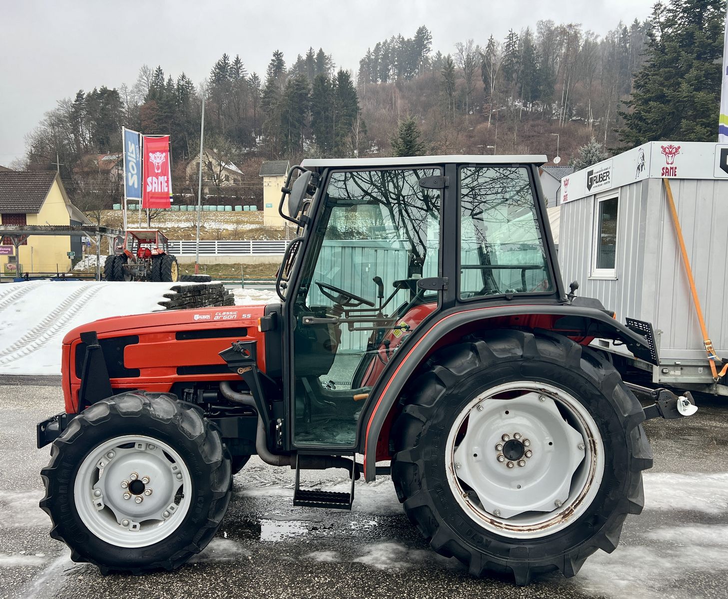 Extrem niedrige Bauhöhe!!!! sehr schöner Traktor SAME Argon 55 DT Classic in sehr schönem Zustand aus Erstbesitz * 100 % Sperre an allen 4 Rädern * Öl-Badscheibenbremsen an allen 4 Rädern * 3 Liter SDF wassergekühlter Motor mit Pumpedüse Einspritzung Tier1 * Lochmann Niedrigkabine - sehr niedrige Bauhöhe: 2,15 m * 30/15 Wendegetriebe * neue § 57 Überprüfung OPTIONAL: Trinker ZW Reifen vorne und hinten (300/70R20, 380/70R28) - neues Verschlusssystem OPTIONAL: 4 Stück Schneeketten PEWAG Der Traktor kann jederzeit sehr gerne bei uns am Betriebsgelände besichtigt werden. Zustellung/Abholung jederzeit möglich. Alle Angaben ohne Gewähr.