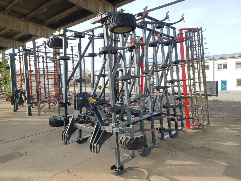 Grossfederzinkenegge Saphir Allstar Longline 601 -Vorführmaschine ca. 100 ha Gesamteinsatzfläche -Arbeitsbreite 6,0 m -Dreipunktanbau Kat. II/III -8-balkiger Rahmenaufbau -hydraulische Klappung -45 Herkuleszinken 70 x 12 mm -Strichabstand 130 mm -1 Satz Schmalschare unbenutzt -1 Satz Gänsefußschare Endurance Carbide 200 mm mit Hartmetallbeschichtung -4 Frontstützräder -Rohstabwalze GE601 Durchmesser 500 mm -einreihiger Nachstriegel -Arbeitstiefe 2-15 cm (je nach Scharvariante) -Arbeitsgeschwindigkeit: 5-15 km/h -Beleuchtungsanlage mit Warntafeln