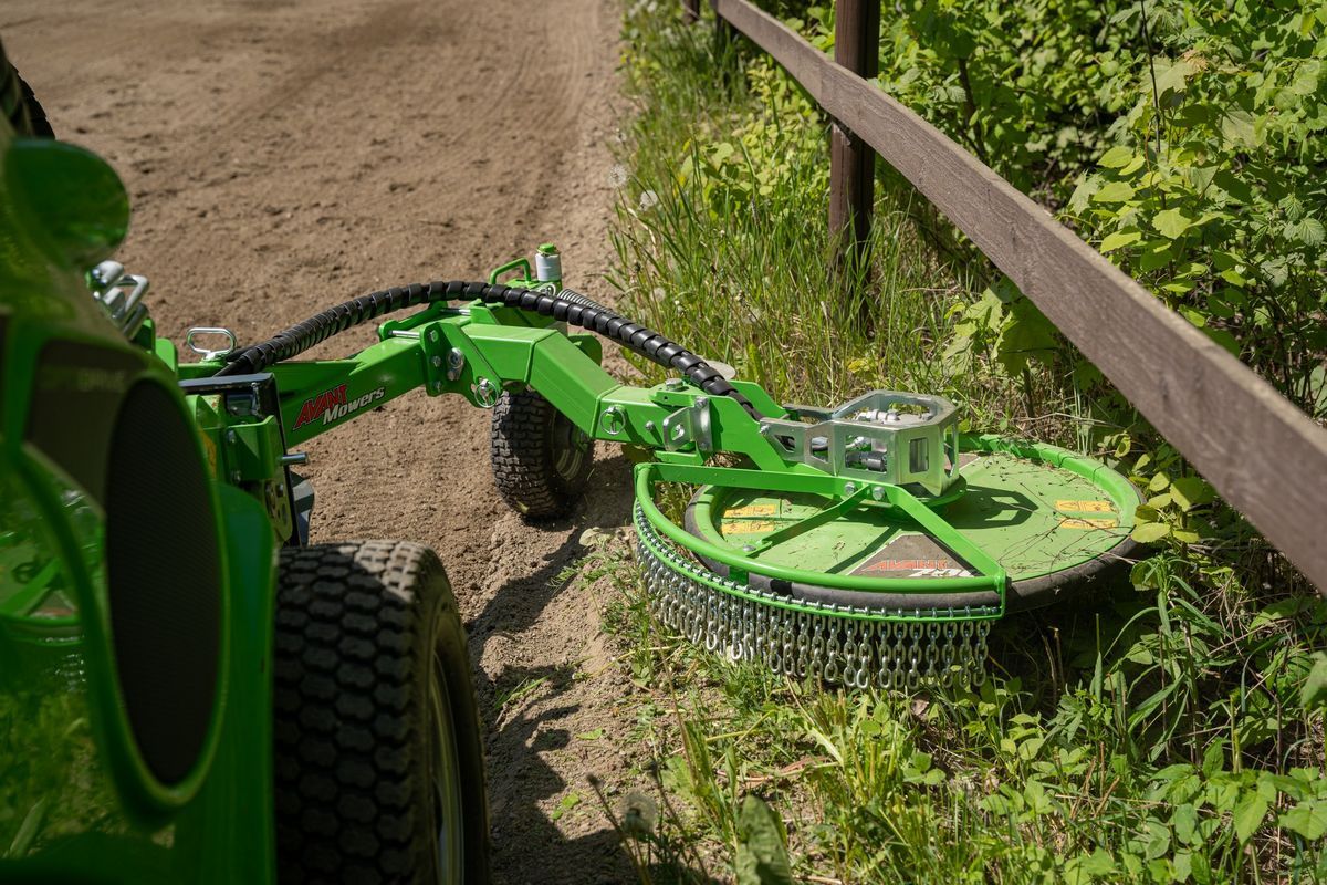 Der Zaunmäher ist die ideale Lösung für die effektive Pflege von schwer zugänglichen Bereichen wie Zäunen, Leitplanken oder Bordsteinen. Dank ausweichendem Mähkopf, einstellbarer Federkraft und 4-fach verstellbarer Grundposition passt er sich flexibel an verschiedene Bedingungen an. Robuste Klingen, Kantenschutz, ein schwenkbarer Arm für beidseitiges Arbeiten und ein verstellbares Stützrad sorgen für sichere, komfortable Handhabung – perfekt für präzise Grünflächenpflege rund um Hindernisse. Technische Daten: • Schnittbreite: 704 mm • Schnitthöhe min. 60 mm • Anzahl der Klingen: 2 Stk. • Max. Breite in Arbeitsposition (Schneidkopf auf rechter Seite): 1870 mm • Mindestbreite in Transportposition: 1172 mm • Gewicht: 122 kg Zaunmäher von Strobl Austria – weil Qualität, Erfahrung und persönlicher Service den Unterschied machen.