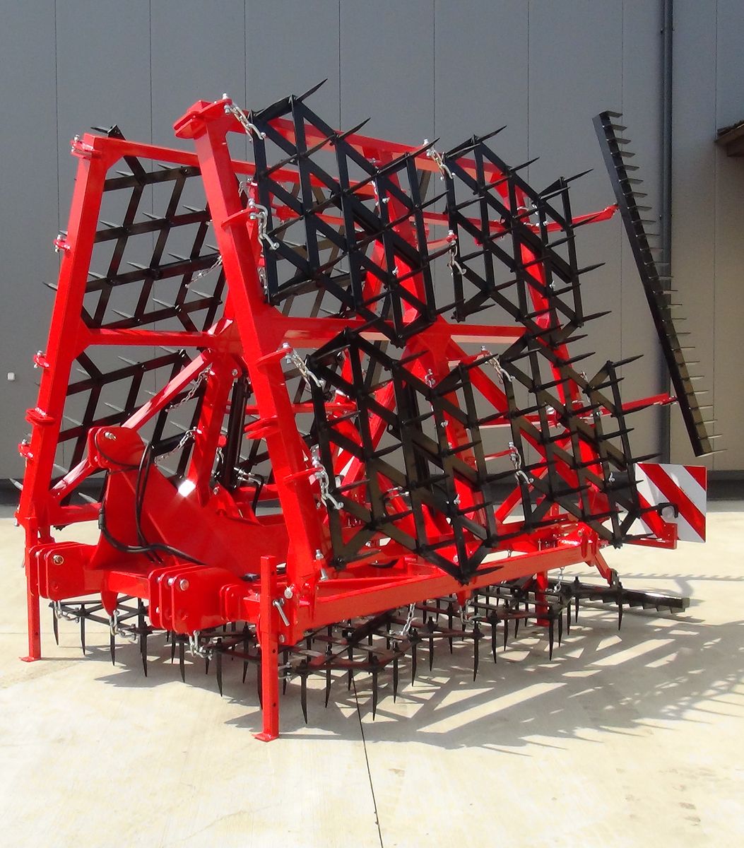 Egge Agro Osek 6.7 m Arbeitsbreite 6 Sektionen Vorne mechanisch verstellbare Schleppe Zinken Typ PH 20 Spurlockerer Hinten Schleppschiene Mechanische Transportsicherung Beleuchtung Ab 100 PS 1380 kg Abmessungen: 295 cm Breite 296 cm Höhe