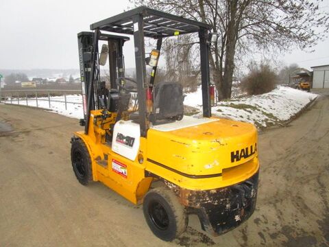 Bauart: Frontstapler / Dieselstapler, Tragkraft: 3000kg, Hubhöhe: 4800mm, Bauhöhe: 2140mm, Bereifung vorne: Vollgummi Einfach 80 - 100% , Bereifung hinten: Vollgummi Einfach 40 - 60% , Anbaugeräte: Seitenschieber, Sonderausstattung: 3. Ventil, Dachabdeckung, Beschreibung: Frontstapler - Dieselstapler HALLA HDF 30 - - 3 Ton. Hubkraft - - - Seitenschieber - - TRIPLEX-Freihubmast - - - Bauhöhe 2,14m - - Hubhöhe 4,80m - - - Baujahr 1998 - - 5676 Betriebsstunden laut Anzeige - - - 4-Zylinder Kia-Dieselmotor 50 PS - - - Arbeitsscheinwerfer - - - NEUER Starter + 4 x NEUE GLÜHSTIFTE montiert - - - NEUER SEITENSCHIEBER WIRD NOCH MONTIERT - - - alles mechanisch - - - einfacher, mechanischer Stapler
