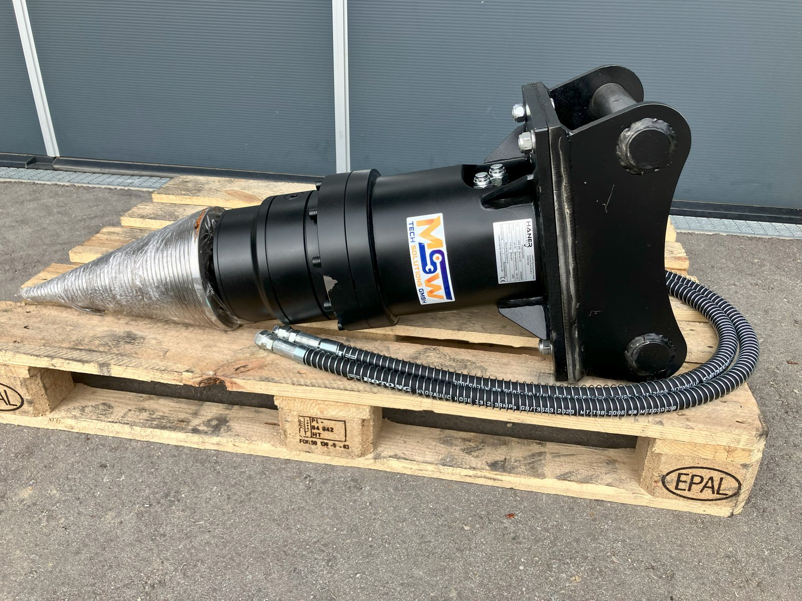 Ob Rundholz oder Problemhölzer, unser Kegelspalter ist optimal einsetzbar um Rundholz bzw. Problemhölzer effektiv und bequem zu Spalten! Die spezielle Form des Kegelspalters und das Planetengetriebe sprengen auch die dicksten Baumstämme bei geringer Maschinenleistung. Durch die optimal angepasste Gewindesteigung schraubt sich der Kegelspalter problemlos ins Holz. Die äußerst massive Bauweise aller Komponenten gewährleistet eine hohe Spaltkraft und eine lange Lebensdauer des Kegelspalters. Durch das Planetengetriebe wird ein sehr starkes Drehmoment von 3760Nm erzeugt. Das Ausgangsdrehmoment des Hydraulikmotors wird effizient multipliziert und sorgt für extreme Leistungsfähigkeit und lange Lebensdauer. Durch eine 65mm Aufnahme können Sie ebenfalls Erdbohrerkronen verwenden. Modell HKS400 Zustand Neuware Gewichtsklasse 3–6 t Bagger Max. Drehmoment 3760 Nm Gewicht 163 kg (Grundmotor mit Drillkegel) Betriebsdruck 100–170 bar Öldurchfluss 40–75 l/min Drehzahl 35–98 Umdrehungen/min Holzdurchmesser 800 mm (max) Antriebswelle 65 mm (rund) Abmessungen 930x400 mm (Grundmotor mit Drillkegel) Kegeldurchmesser 200 mm Kegelspitze austauschbar Mehr Details auf Anfrage, andere Größen siehe weiter Anzeigen Preis inkl. Mwst: bezieht sich auf die Abgebildeten Erdbohrer, ohne Aufnahme, ohne Schläuche Aufnahmen: Folgende Aufnahme (mit Grundplatte) können wir mit Aufpreis anbieten: Lehnhof MS01/Verachtert CW05/Martin MH01- 208,00 € Lehnhof MS03/Martin & Geel MH03/ - 234,00 € Lehnhof MS08/Verachtert CW10/ Martin& Geel MH10 - 523,00 € Schläuche: Schläuche mit Schlauchschutz - 60 € Steckkupplungen auf Anfrage: Lieferumfang: Betriebsanleitung Ersatzteilliste CE Konformitätserklärung Viele andere Modelle & Größen im Shop verfügbar. Bestens geeignet für, Takeuchi, Kubota, Kobelco, Cat, Liebherr, Hitachi, Wacker Neuson, Bobcat, Dosan, Case usw Mit Martin, Geel, Engl, BDS, Lehnhof, Wimmer Aufnahme usw.
