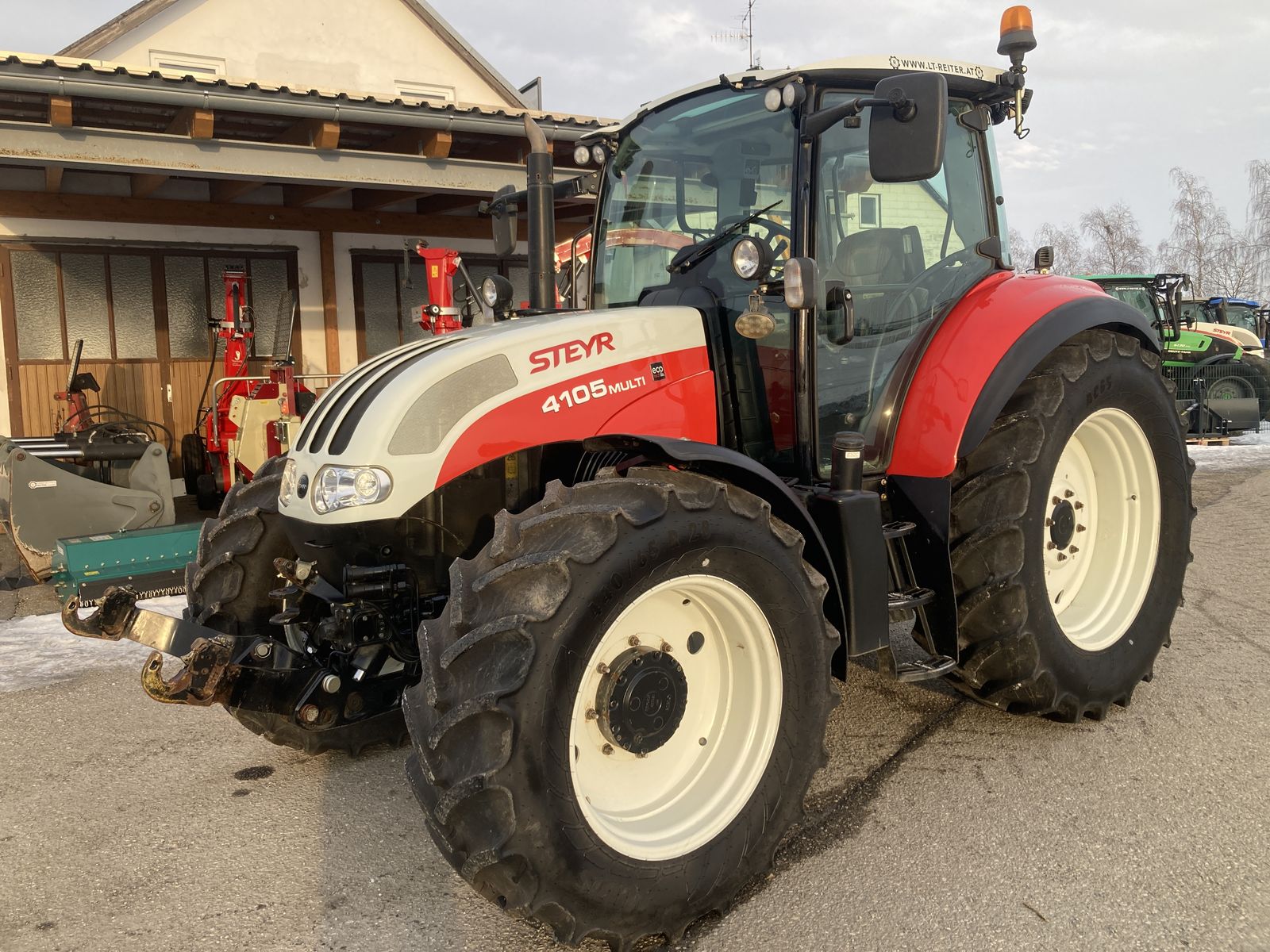 Steyr 4105 Multi Serie 2 Baujahr 2014 6833 Std. 32/32 Getriebe FH, 2 Leitungen nach vorne Druckluft 6 Steuergeräte (4 elektr. 2 mech) Ber. hinten: 540/65R38 Ber. vorne: 440/65R28 Klimaanlage Kabinenfederung Luftsitz Multicontroller Pickerl §57 neu anmeldefertig