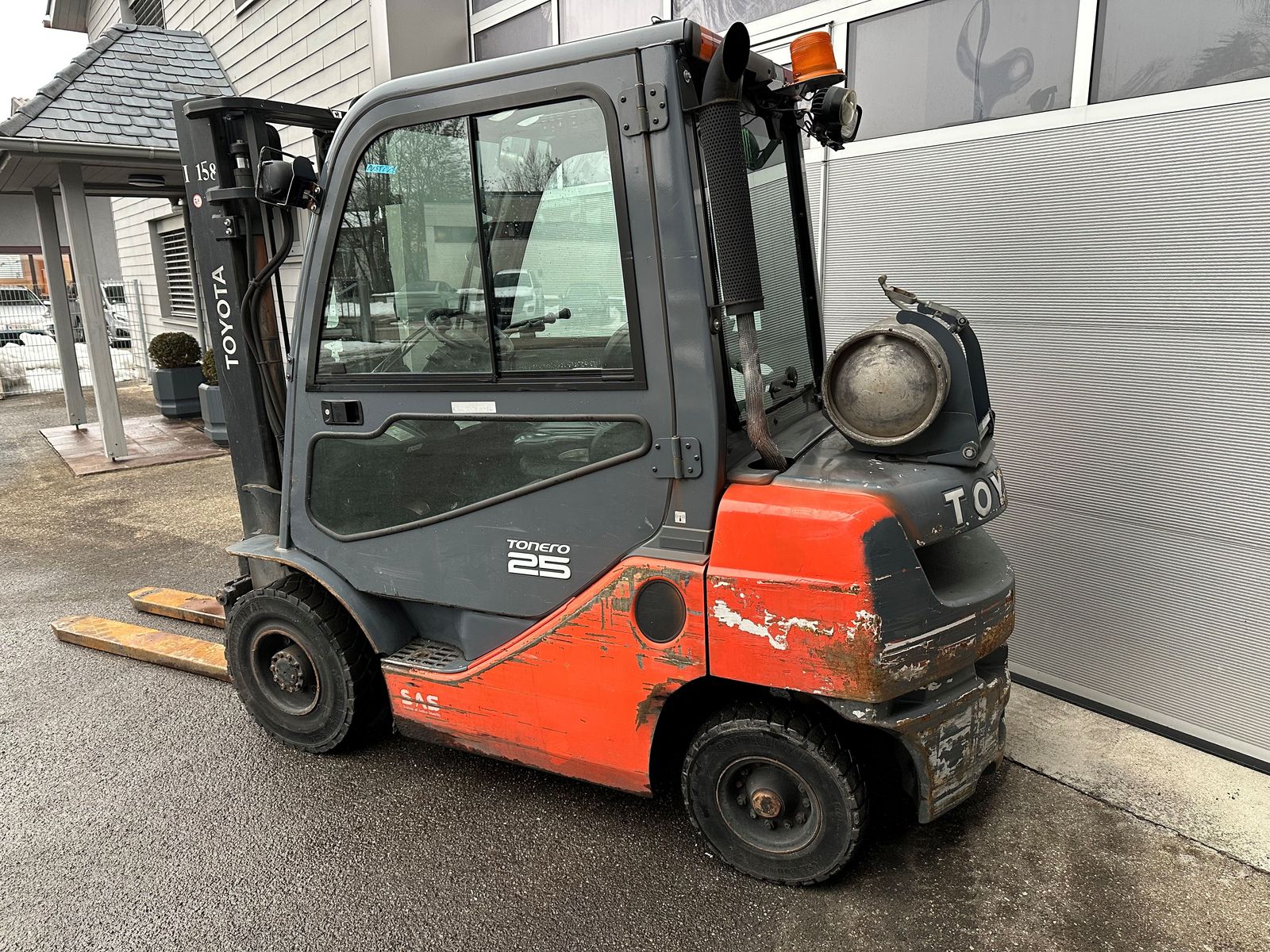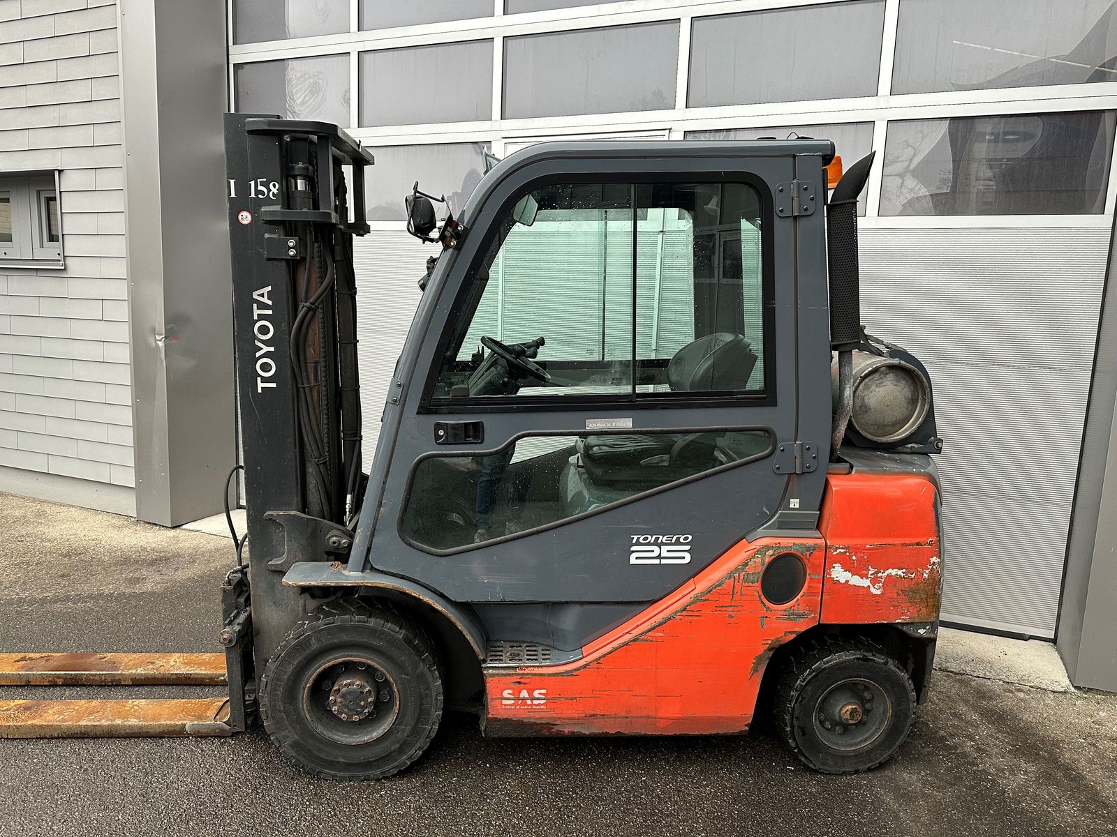 TOYOTA Gasstapler 02-8FGF25 Baujahr: 2017 10920 Betriebsstunden Tragkraft: 2500 kg Hubmast: Duplex-Freisicht Hubhöhe: 3300 mm Bauhöhe: 2145 mm Freihub: 150 mm Bereifung: Super-Elastik Motor: 4-Zyl. Toyota mit 38 kW Leistung - Seitenschieber - hydraulisch ausfahrbare Gabelzinken - Kabine mit Heizung - Arbeitsscheinwerfer vorne u. hinten sofort einsatzbereit ! Für etwaige Rückfragen steht Ihnen Herr Thomas Lehner natürlich gerne zur Verfügung !
