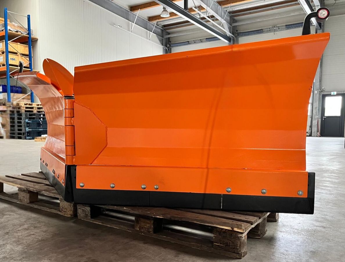 Hydraulisch klappbarer Kommunal-Schneepflug. Mit Dreipunktanbau KAT2 und Euro-Aufnahme (andere Aufnahme auf Anfrage). Die flexible Schürfleiste aus Gummi macht den P