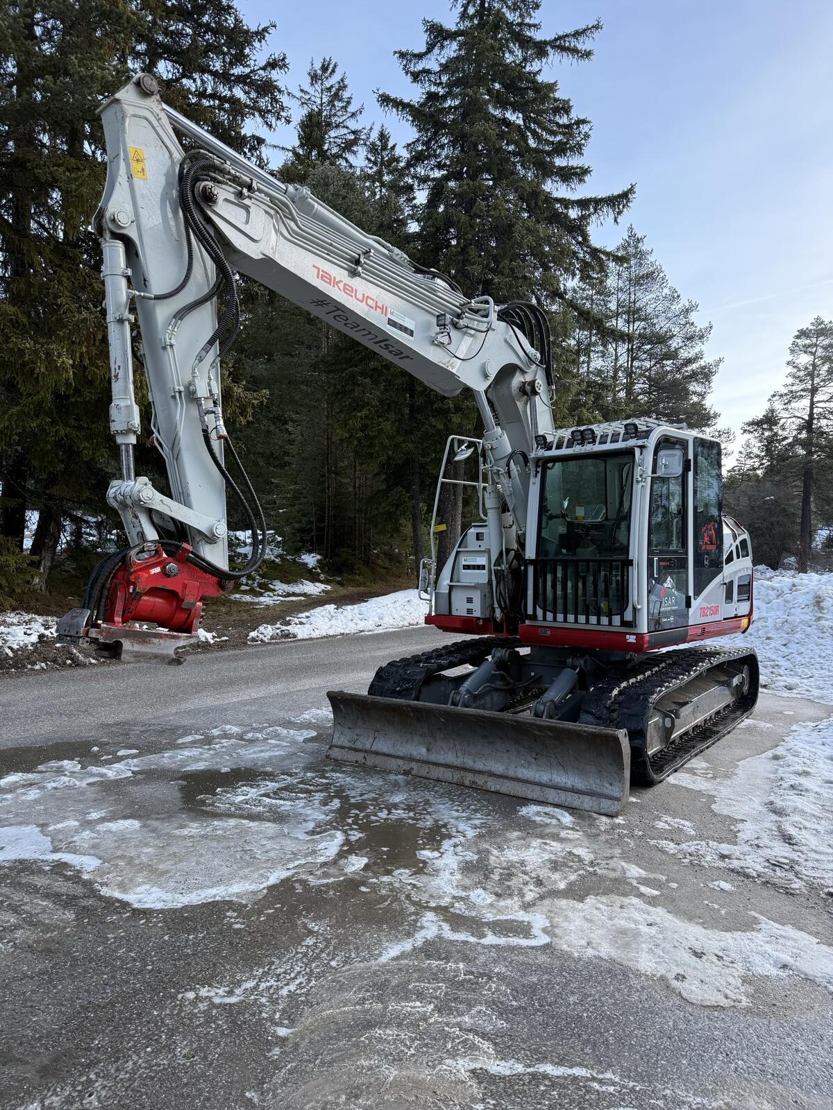 Tieflöffel, Böschungslöffel, 2 Grabenlöffel mit Messer, Schrämmhammer, HuppiQuick-Aufnahme, Service wurde bei 2.500 Bstd. durchgeführt. Építőgépek Lánctalpas kotró