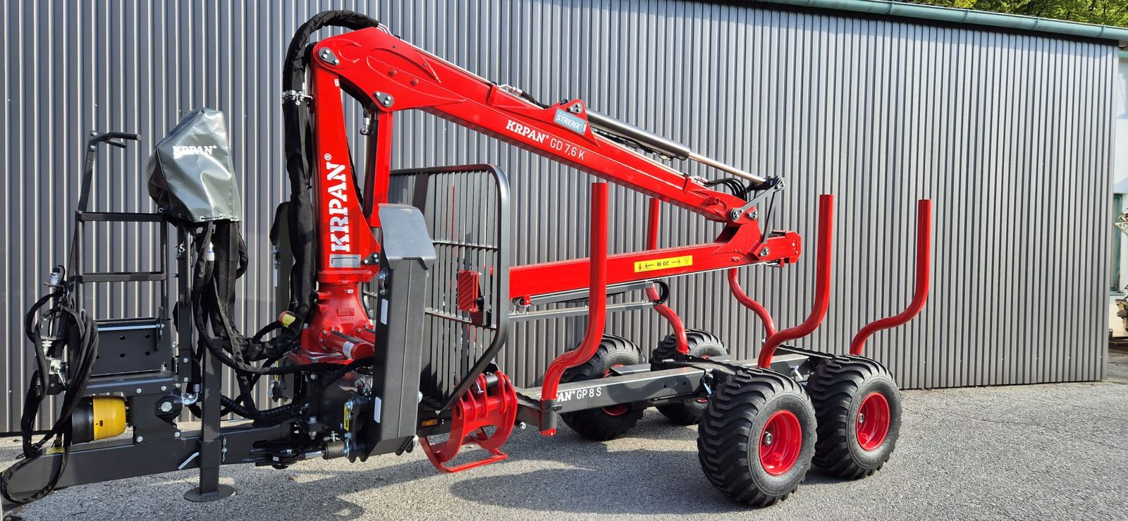 KRPAN Rückewagen GP8DF mit Kran 6, 6k 6, 60m Auflaufbremse Baujahr 2024 Gesamtgewicht 8000 kg Eigengewicht 1450 kg ohne Räder ohne Kran Bereifung 400/60-15.5 16 Lage