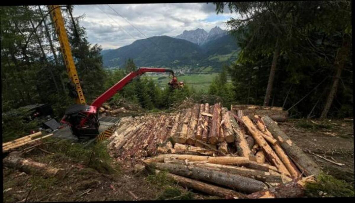 Holzernte-Kombigerät, Bj. Nov. 2010, 14.400 Bstd. LKW: IVECO-Trakker, AD 260 T 36 - 6x4, EURO 5. Ladekran: LIV 14.81 K. Kranprozessor: Keto 100 LD. Laufwagen: SHERPA