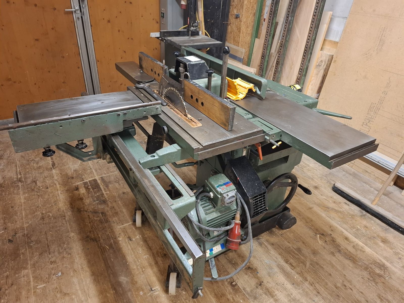 + 4-fach Kombi+ Abricht-Dicken Hobelmaschine mit 310 mm+ Kreissäge schwenkbar+ Fräse 30 mm starr+ Fahreinrichtung+ Fräsanschlag+ Kombianschlag+ 1- Moto
