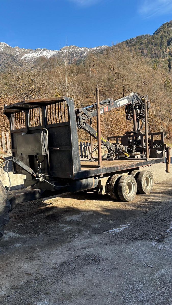 Holzhänger Eigenbau mit Jonsered 590 Kran, Reichweite 7, 5m, Druckluftbremse, Beleuchtung, Ladevolumen 11 FM, Eigenölversorgung über Zapfwellenpumpe, großer Hydraulik