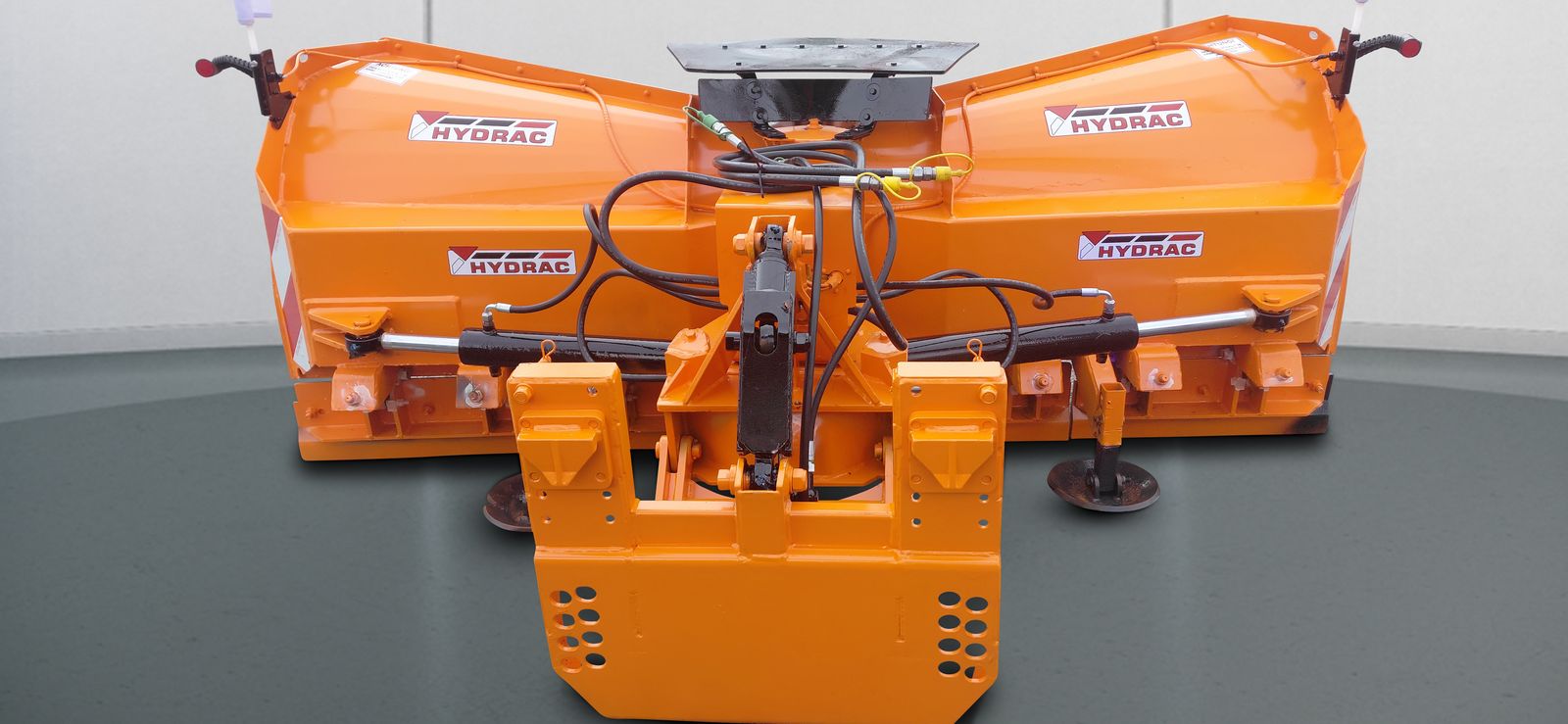 Schneeschild mit Dreipunktaufnahme Kat. 1 – 2 und hydraulischer Steuerung, für Traktoren von 50 – 80 PS. Geeignet für alle mittleren Traktoren. Mit Stahlräumleiste.