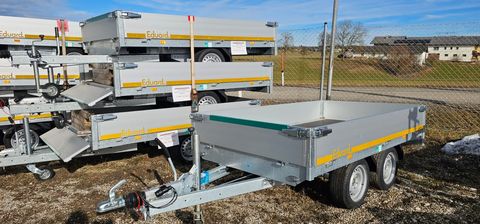 Toller universeller Autotransporter mit nur 10 Grad Auffahrtswinkel, Alu Aufsatzwände, voller Siebdruckboden, Automatisches Stützrad, Am Foto unten Pótkocsik Szemé