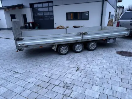 BlomenröhrTandemtieflader mit Alurampen und Druckluftbremse 6, 9 ton Gesamtgewicht bei 80 km/hBoden sollte mal erneuert werden!Zusätzliche Bilder können gerne