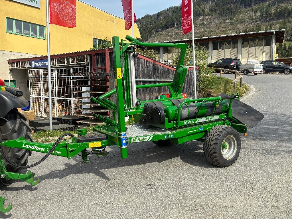 McHale Ballenwickler 991 BC, gezogene Wickelmaschine, 750mm Folienvorstrecker, Ladearm seitlich, Ballenablage hydraulisch. Ballen können stehend oder liegend abgele