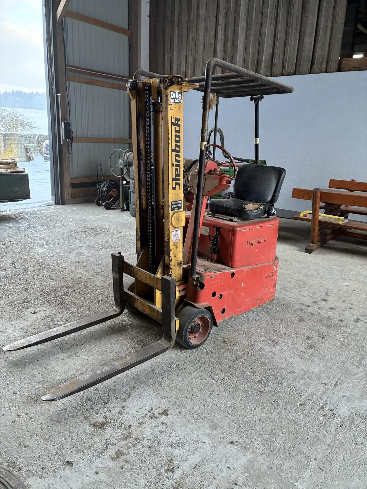Wir liefern Österreichweit!Verkauft wird ein Steinbock Tonnen 1, 6 Elektro Gabelstapler.Die Hubhöhe beträgt ca. 4500 mm! Verbaut ist ein Triplex Mast.Die B