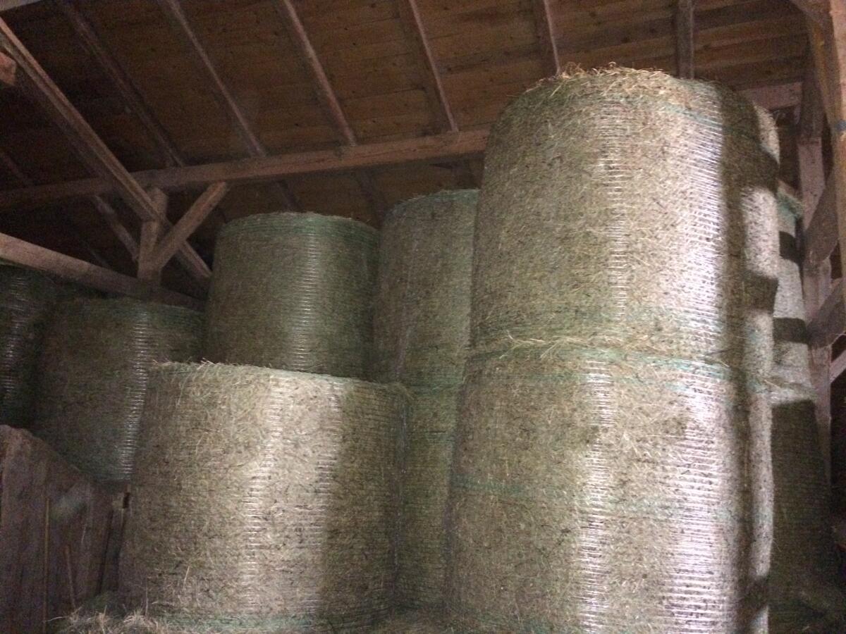 Heu vom 1. Schnitt, 2.025, und Grummet 2. Schnitt, eigene Herstellung, sehr gute Qualität, kein Staub, 20 Jahre Erfahrung, hallengelagert auf Paletten, geprüfte Qual