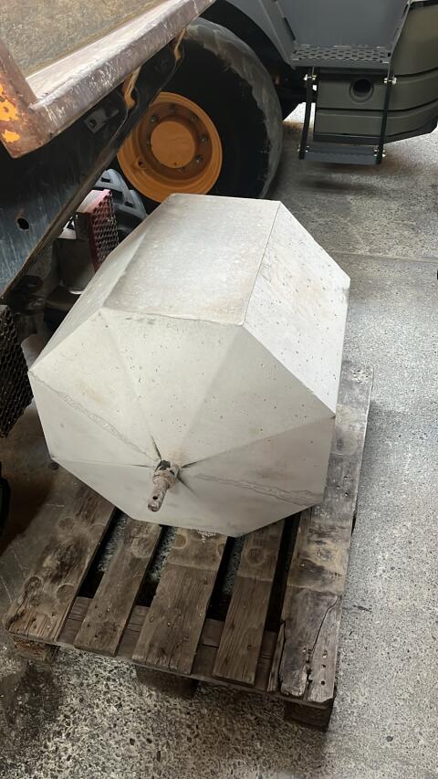 Verkaufe neues Frontgewicht Eigenbau aus 4 mm Stahlmantel, ausbetoniert und lackiert. Ca. 1.250 kg. Unterlenkerbolzen und Dreipunktaufnahme durchgehend, Kat 2. Maße: