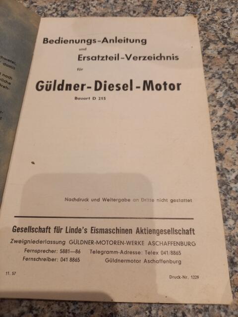 Güldner Betriebsanleitung und Ersatzteilliste D 215, inkl. Versand für € 22, -. Accessori per trattore Motori per trattori