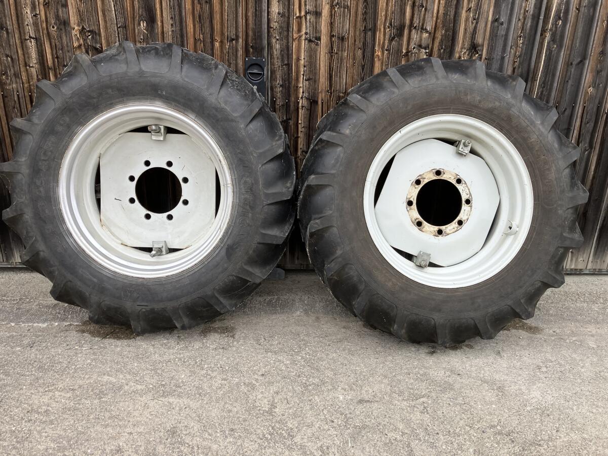 Gebrauchte Zwillingsräder 12.4 R36 inklusive 4 Schnellverschlüsse, Profil 90%. Hatten sie auf einer Felgen/Reifengröße von 420/85R30 montiert. Accessori per trattore