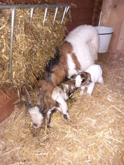 Wir verkaufen unsere Zwergziege Nala mit ihren zwei jungen Kitzen, Kira und Bambi, beide weiblich. Capre Capre nane