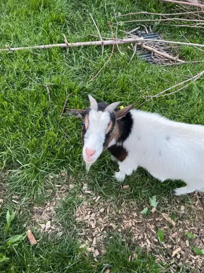 Verkaufe weibliche Ziege (2 Jahre), hat seit der Geburt eine Krümmung am li. Vorderfuß, dies hält sie jedoch nicht ab, ein normales Ziegendasein zu führen. Ist flink
