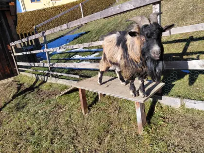 Leider müssen wir uns von unserem Bock trennen, da er mit einem Teil unserer Damen verwandt ist. Er ist an Kinder und viele andere Tiere gewöhnt. Capre Capre nane