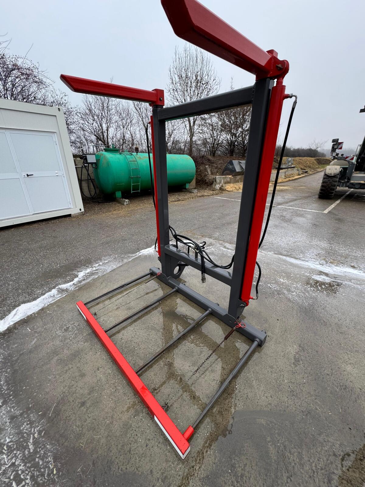 Verkaufe hiermit zwei hydr. Ballengabeln für Quaderballen, eine für den Frontlader (Euroaufnahme), eine für den Heckanbau. Öffnungsweite 4 mal 90iger Quaderballen hinten und vorne. Die Quaderballen können für den Transport durch Einklemmen gesichert werden. Sie befinden sich in einem sehr guten Zustand.