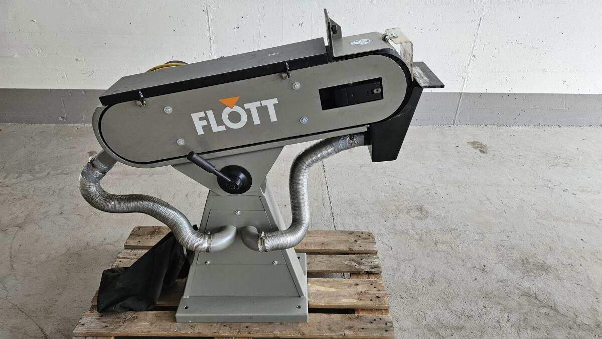 Maschine ist neuwertig, Neupreis heute: € 3.480,- inkl. MwSt. FLOTT Bandschleifmaschine BSM 150 A, Schleifband: 150 x 2.000 mm, Planschleifbereich: 600 mm, Bandgeschwindigkeit: 15 + 30 m/s, Motorleistung: 3,0 / 3,75 kW | 400 V - 50 Hz, Absaugleistung: ca. 630 m³/h, Leistung Absaugmotor: 0,37 kW, Abmessungen (LxBxH): 1.100 x 550 x 1.035 mm, Gewicht (Netto): ca. 105 kg, inklusive CEE-Kragensteckvorrichtung mit Phasenwender 16 A, Schleifband K60 und Staubabsaugung mit Staubsack. Hochqualitative und sehr langlebige Konstruktion für den Einsatz in Handwerk und Industrie. Hochwertiger Industriemotor, 2 Bandgeschwindigkeiten - über polumschaltbaren Antriebsmotor.