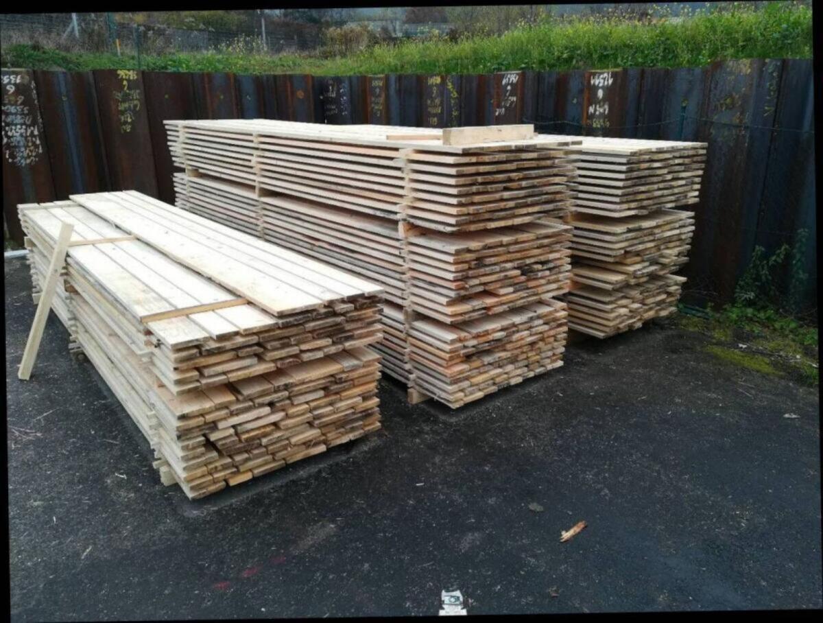 Verkaufe Holzbretter sägerau 24 mm, verschiedene Breiten, ca. 8-17 cm, ca. 100 m², 4 m Länge. Bis 10 m²: € 9,- / m², bis 30 m²: € 8,- / m², ab 30 m²: € 7,- / m². Ca. 500 Stk. 5/8 Staffel, 4 m Länge: € 7,- / Staffel. Ca. 40 Stk. 5/8 Staffel, 3 m Länge: € 5,50 / Staffel. Ca. 100 Stk. 4 x 5 Latten, 4 m Länge: € 4,- / Latte.