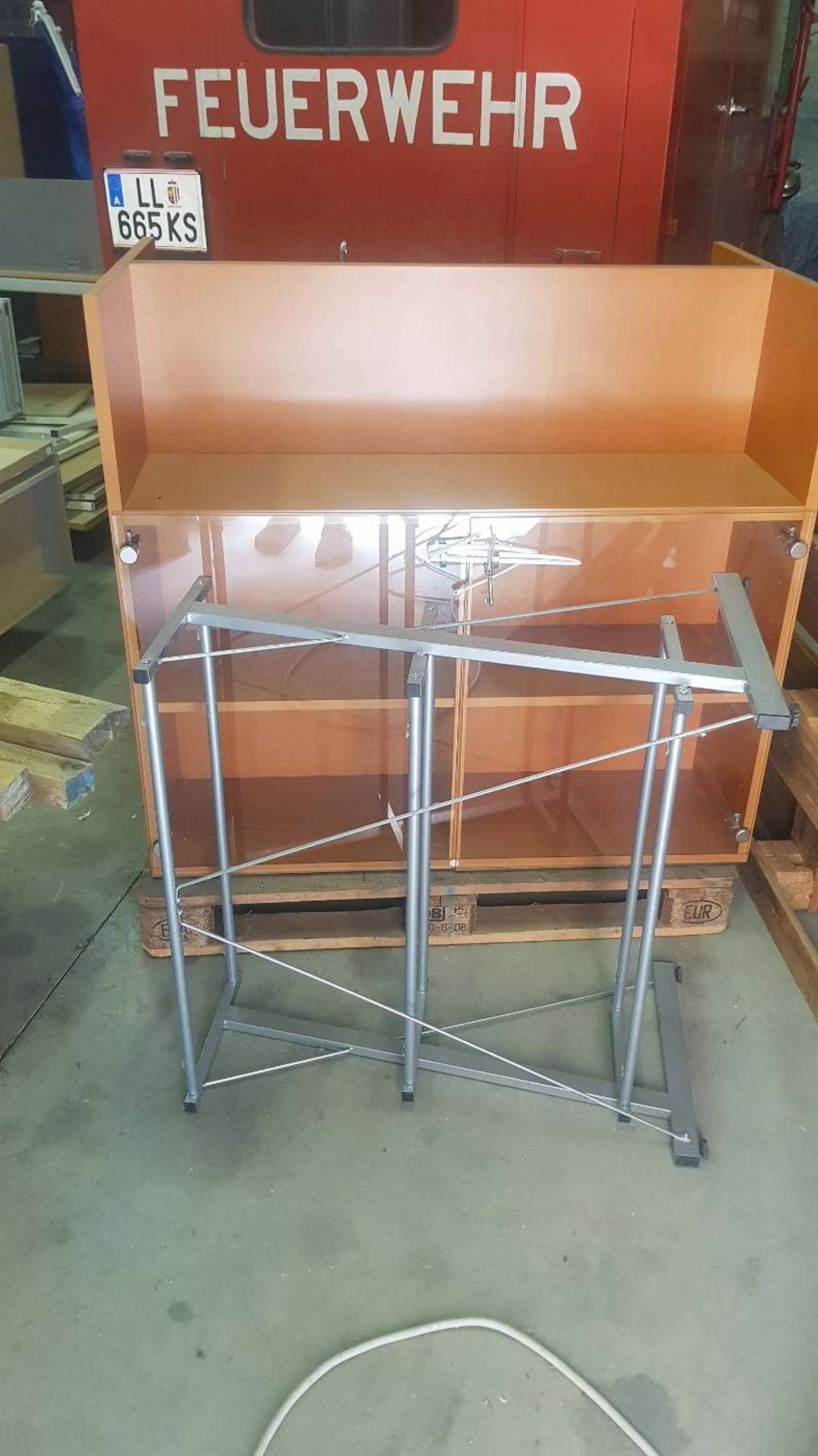 Verkaufe umfangreiche Büroeinrichtung. 3 Tische, 3 Rollcontainer, 8 Kästen.