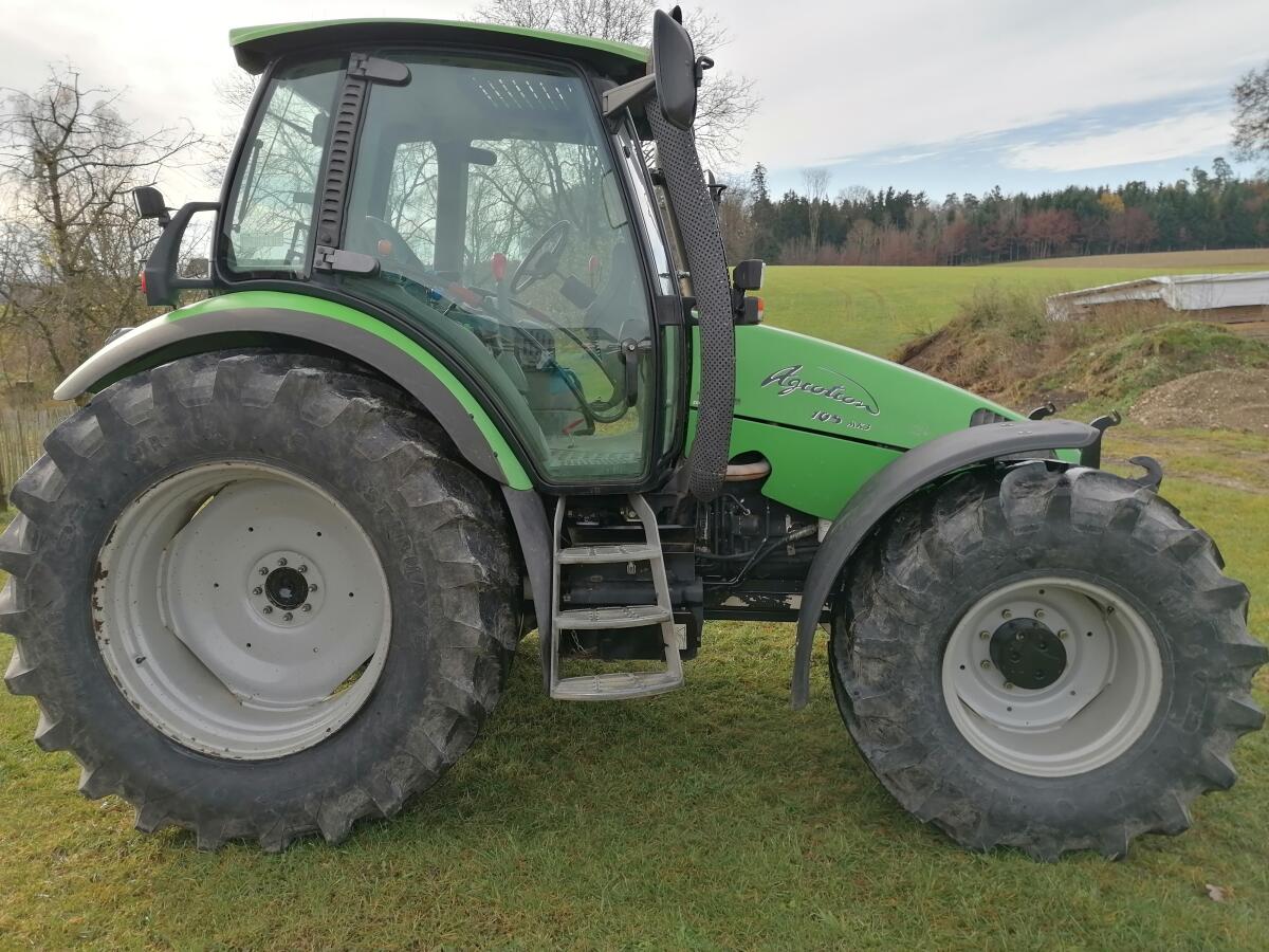 Verkaufe Deutz Fahr Agrotron 105 MK3, sehr zuverlässiger, sparsamer, durchzugsstarker, leichter Traktor, Bj. 2003, 118 PS, Bereifung neuwertig, 600/65R38, 540/65R24, 4x hydr. Stg., FH/FZ, 1x Bautenzug von hydr. Stg. und Klimaanlage defekt. Optional K80 Kugel verfügbar.