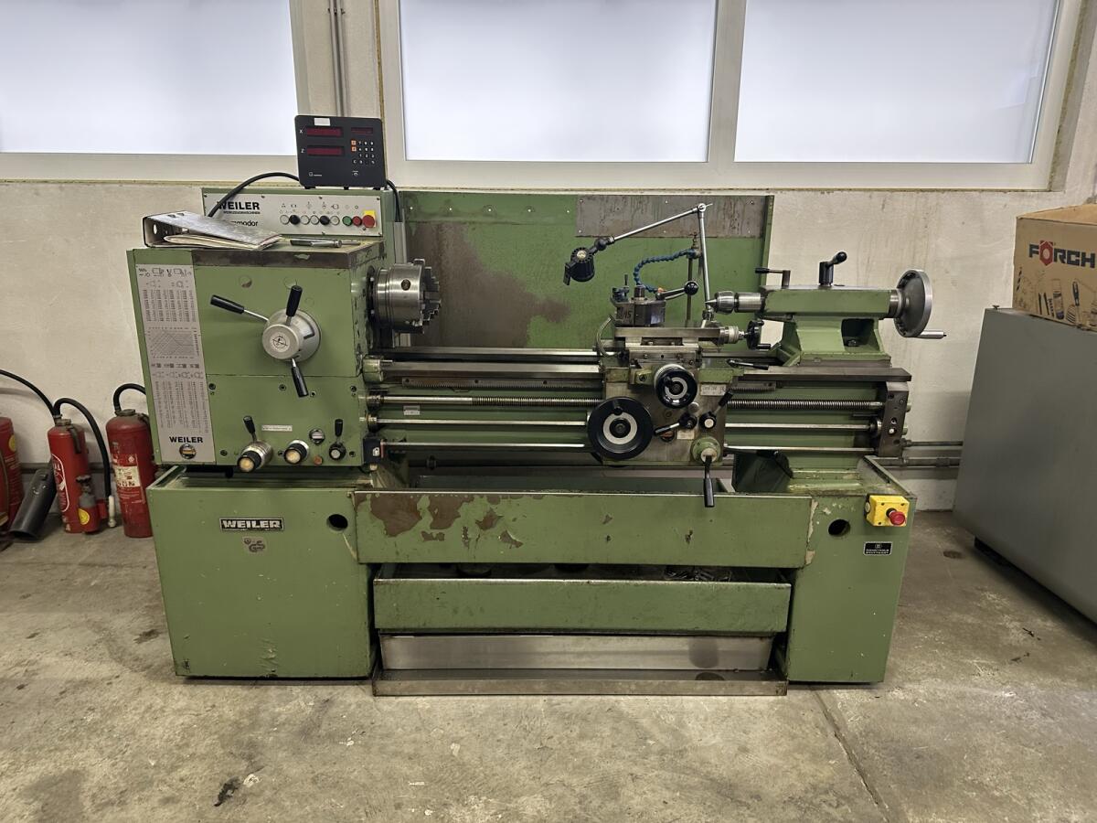 Verkaufe gebrauchte Weiler Commodor, Bj. 1990, in sehr gepflegtem Zustand. Drehdurchmesser max. 380 mm, Spitzenweite 1.000 mm, Durchlass 56 mm, Multifix, 1 Stk. Stahlhalter, 2-Achsen Digitalanzeige Heidenhain, Rollkörner, Kühlmitteleinrichtung, 3-Backenfutter, diverse Schlüssel, Spritzwand, Drehzahlbereich: ca. 25-2.000 U/min, Spindelnase: A 2-6, Antriebsleistung: 3,5 kW, automatische Längs- und Planvorschübe, Vorschubbereich: ca. 0,026-1,253 mm/U. Geeignet für Gewinde: metrisch 0,35-12 mm, Zoll 44-2 Gg/”, Diametral-Pitch Gewinde 88,5 Dp, Modul 0,2-4, Reitstock: MK 4.