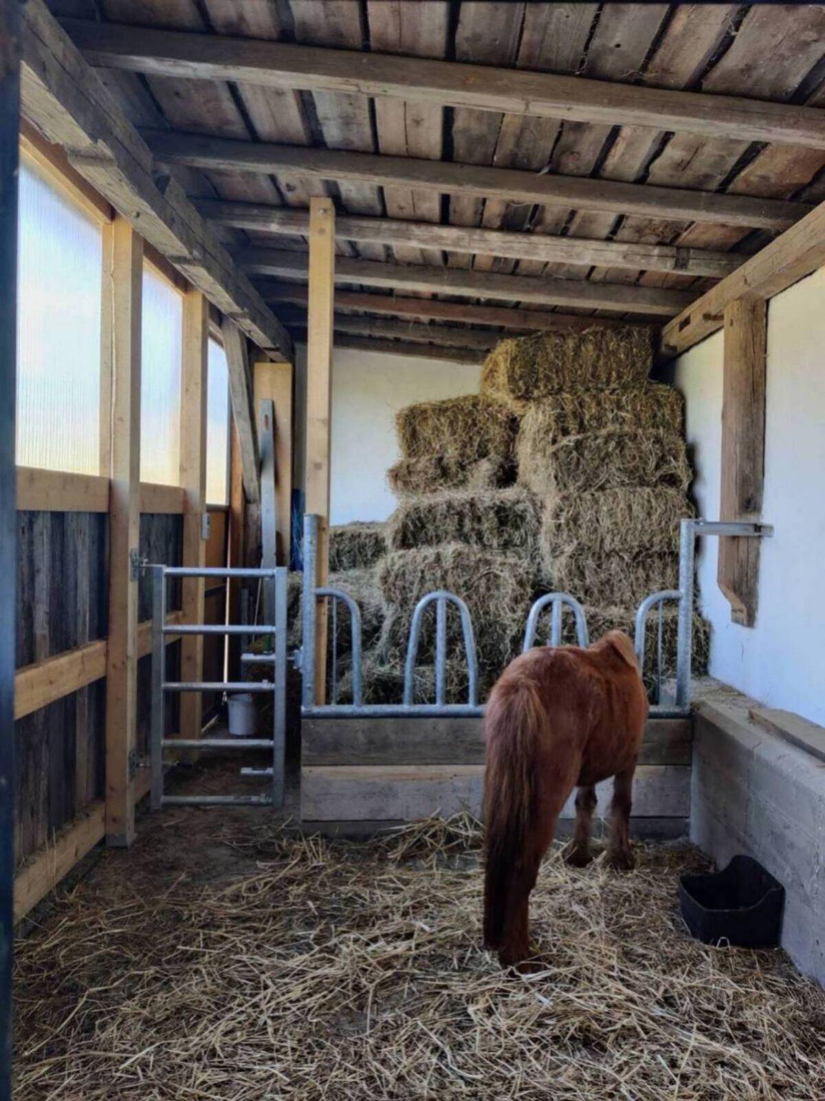 Wir haben noch einen Einstellplatz in unserem Offenstall (ca. 15x3 m) mit Auslauf (ca. 9/9 m) zu vergeben. Diesen Sommer haben wir den Pferdestall und den Auslauf vergrößert. Im Pferdestall befindet sich bereits ein älteres Shetlandpony als Einsteller und unser eigenes Quarter Horse. Wir besitzen einen eingezäunten Reitplatz und Ausritte sind bei uns aufgrund wenig Verkehr und sehr schöner Waldwege bestens geeignet. Für Reinigung, Fütterung und Verpflegung wird täglich gesorgt, und die Pferde haben direkte Verbindung zur Weide und Koppel. Der Stall kann jederzeit besichtigt werden. Bei Interesse gerne melden.