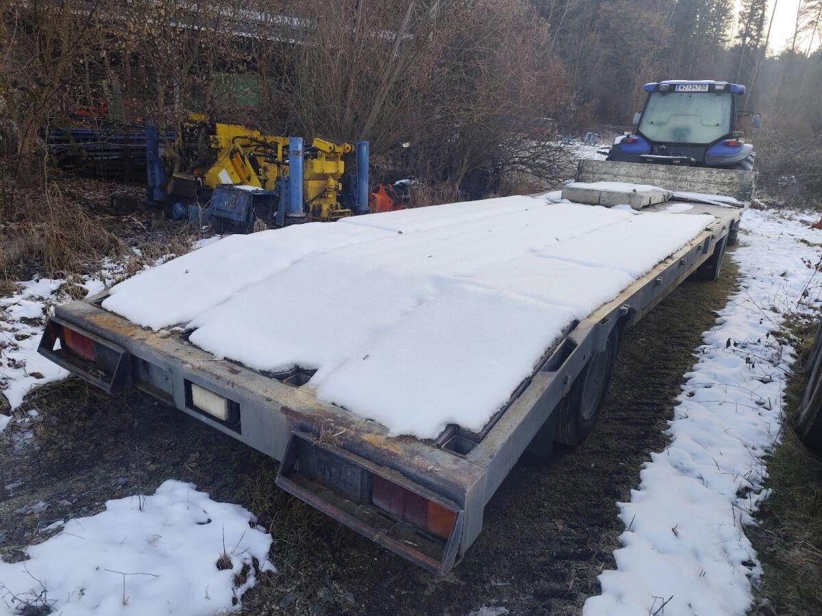 Fligl Tieflader, 9 m lang, 90 cm hoch.