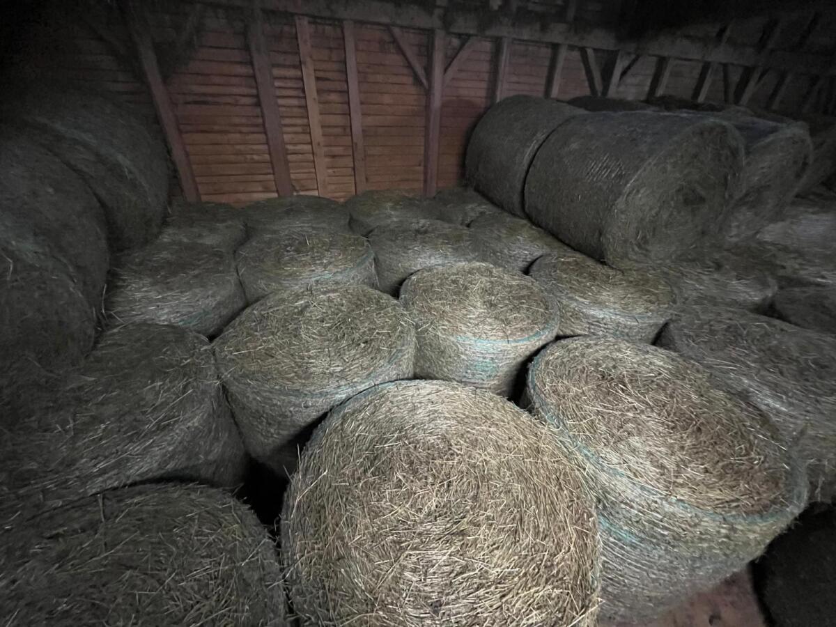Erster Schnitt 2025, trocken eingebracht und auf Paletten gelagert.