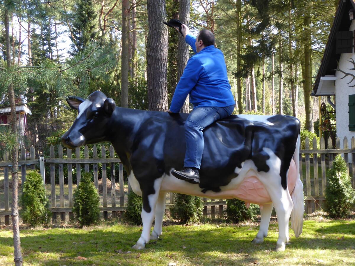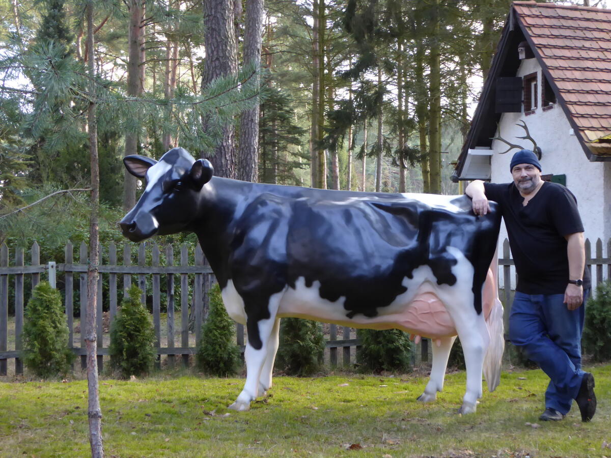 Holstein Friesian Kuh "Adelchen", schwarz-weiß, li. schauend, 270 cm, belastbar, 3D HAEIGEMO, Artikelnummer: 1003. Verkaufspreis: € 1.890,-, inkl. MwSt., inkl. Versand. Lieferzeit: 20 - 25 Tage. Höhe: 175 cm, Länge: 270 cm, Tiefe: 85 cm. Kopf nach li. schauend, wenn man am Schwanz der Kuh steht und nach vorne schaut. Auf Wunsch mit Kopf gerade ausschauend lieferbar. Auf Wunsch mit Kopf nach re. schauend lieferbar. Bis 100 kg belastbar mit und ohne Horn. Material: Glasfasermatten mit Kunstharz. Für Innen und Außen geeignet. Glatte Oberflächenstruktur. UV-beständig. Effektaugen-Bemalung. Befestigungshalterungen an den Füßen.