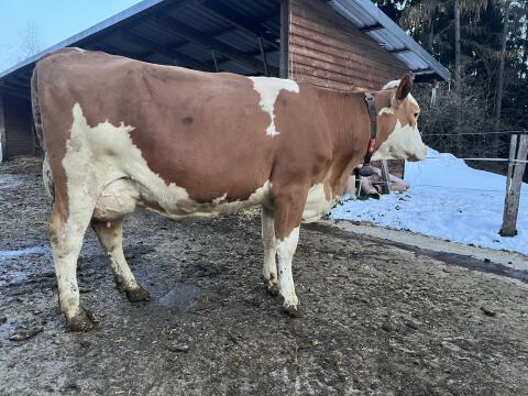 Verkaufe Fleckvieh Erstlingskühe, eine bereits trächtig und eine vor drei Wochen gekalbt, robotertauglich, Verkauf wegen Überzahl.