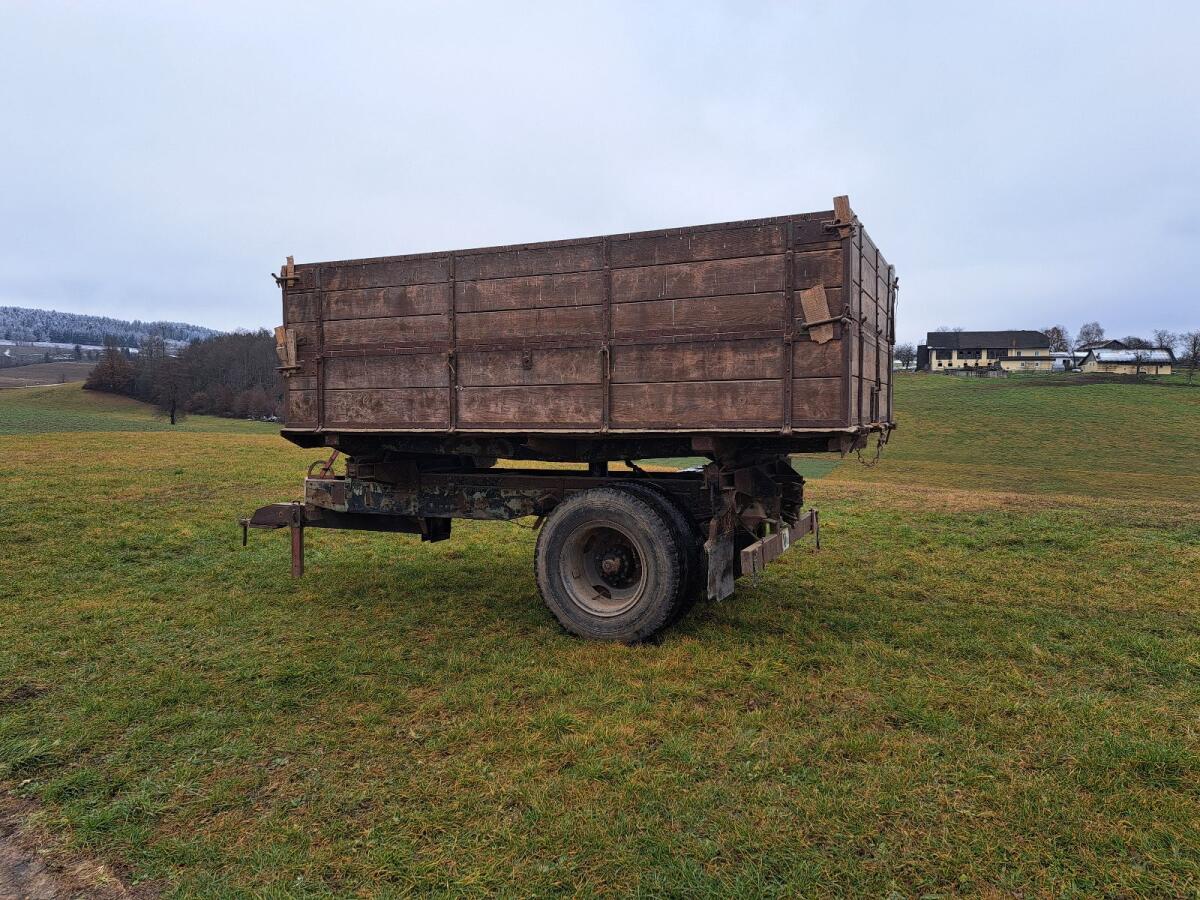 Kipper zu verkaufen: Maße Aufbau: Breite 2,52 m, Länge 3,80 m, Höhe 1,13 m. Gesamthöhe 2,52 m. Achse bremsbar, Preis VHB.