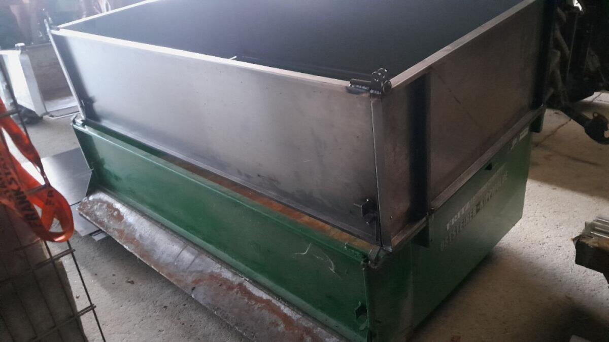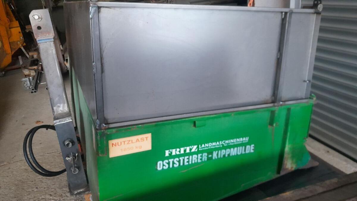 Gebrauchte Kippmulde mit Aufsatzwänden, b 2.000 mm, t 1.250 mm, h 900 mm.