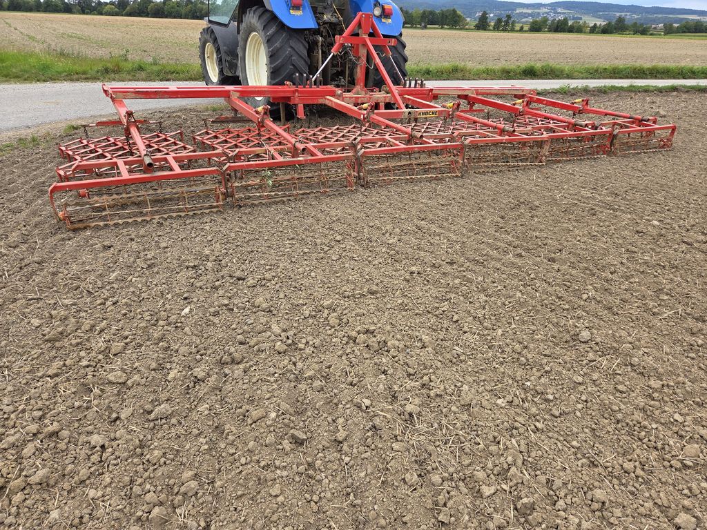 Verkaufe Egge mit 8,40 m, 7 Reihen Eggenfeld und Doppelkrümmler, hydr. klappbar, sofort einsatzbereit, Spurlockerer, Stützräder inkl. (nicht montiert). Saatbettkombination wegen Neuanschaffung desselben Gerätes zu verkaufen, ca. 1.900 kg, leichtzügig ab 120 PS exkl. 13 % MwSt., Nähe St. Pölten. Ähnlich Einböck, Lemken, Hatzenbichler, Kongskilde.