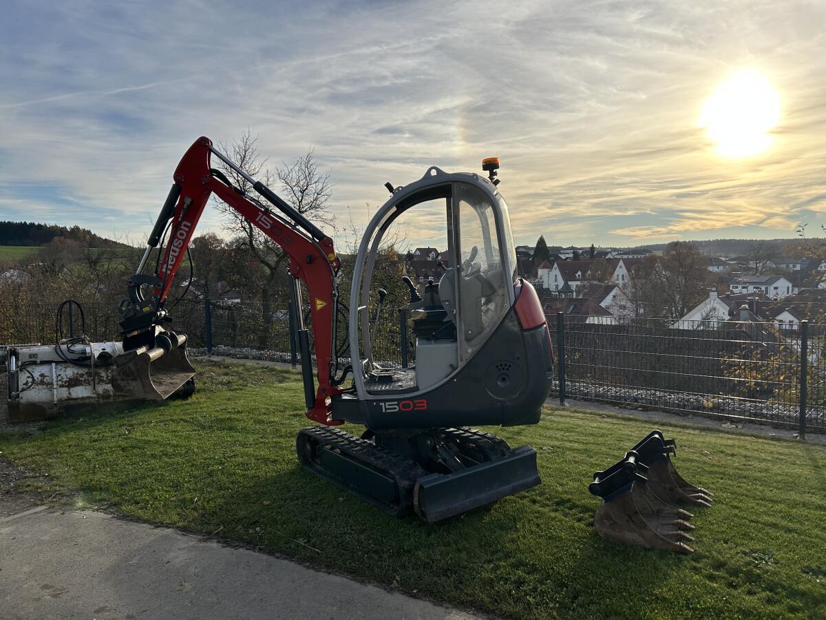 Verkaufe einen sehr guten Minibagger der Firma Neuson, mit einem Gewicht von 1.615 kg. Der Bagger hat aktuell 3.442 Bstd. und ist Bj. 2005. Das Gerät besitzt folgende Ausstattung: Teleskopfahrwerk, LED Beleuchtung, hydr. Schnellwechsler MS01, Löffelpaket mit einem hydr. Schwenklöffel. Der Bagger hat keine Mängel! Es wurde vor kurzem eine große Wartung mit allen Ölen und Filter durchgeführt, inkl. UVV Prüfung. Es handelt sich um einen Privatverkauf ohne Garantie, Gewährleistung und Rücknahme.
