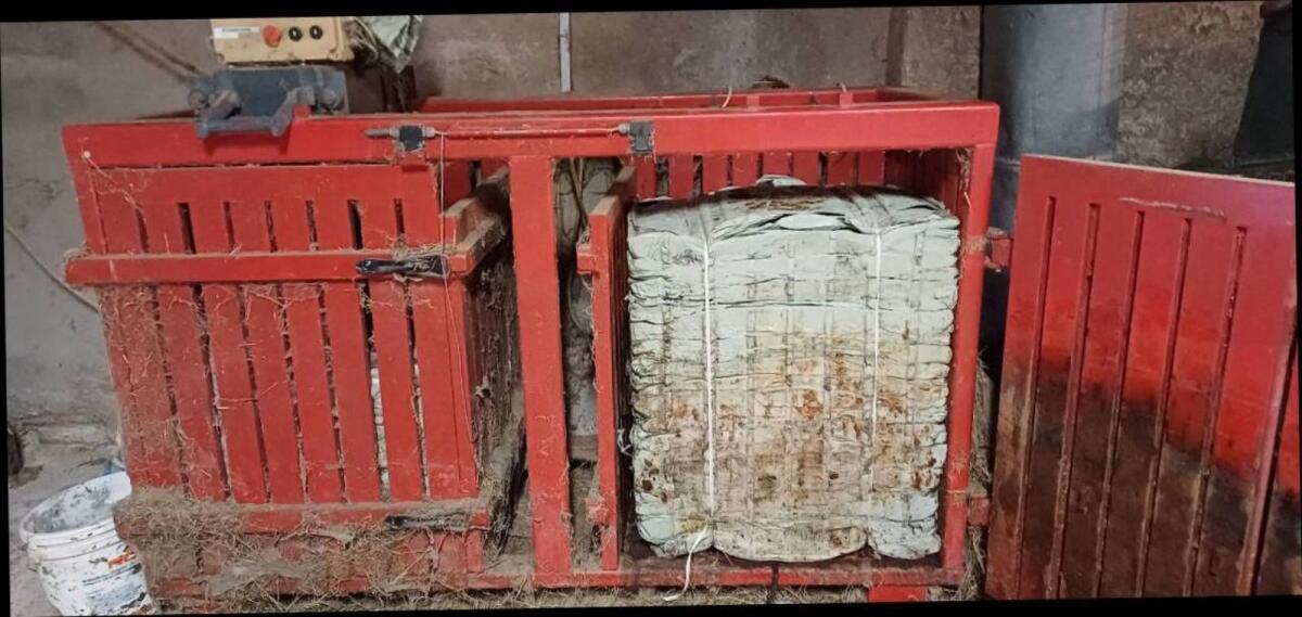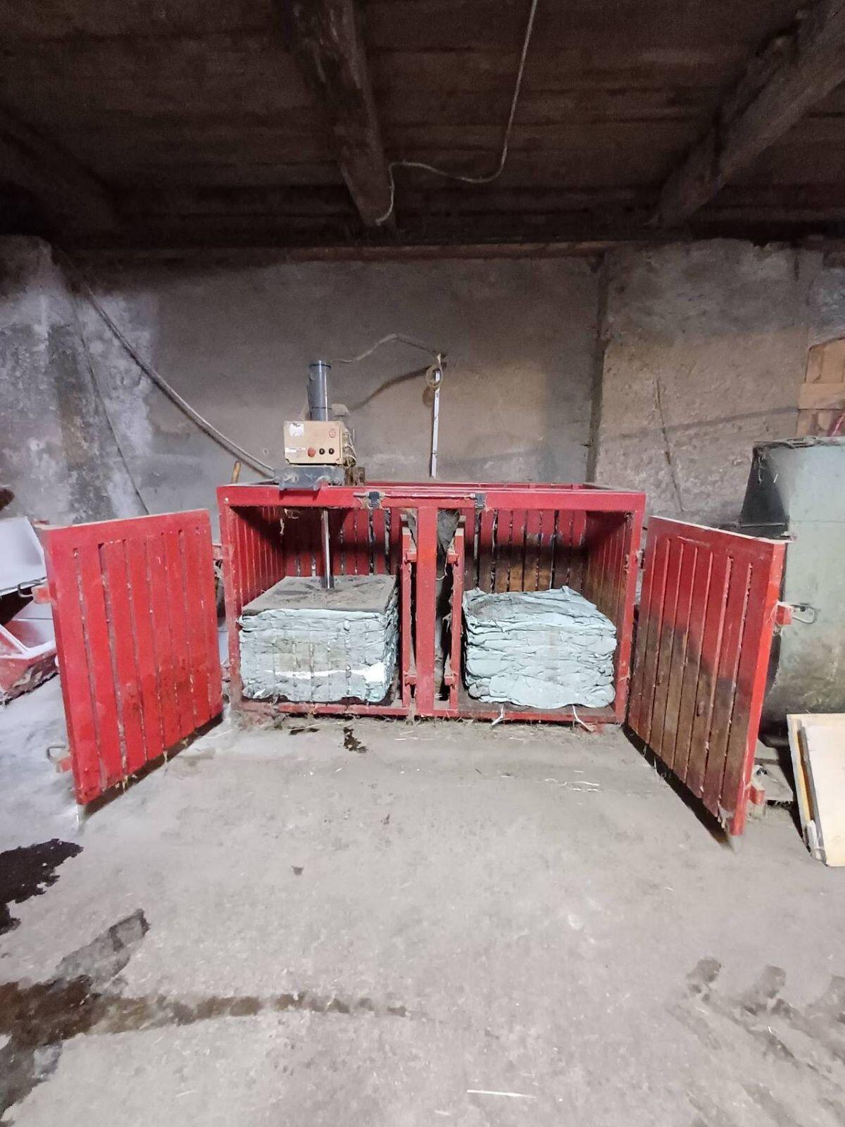 Doppelkammerpresse hydr., Presskammermaße 80x80x95, Gesamtabmessung 2,20 m x 1,8 m x 2,20 m.