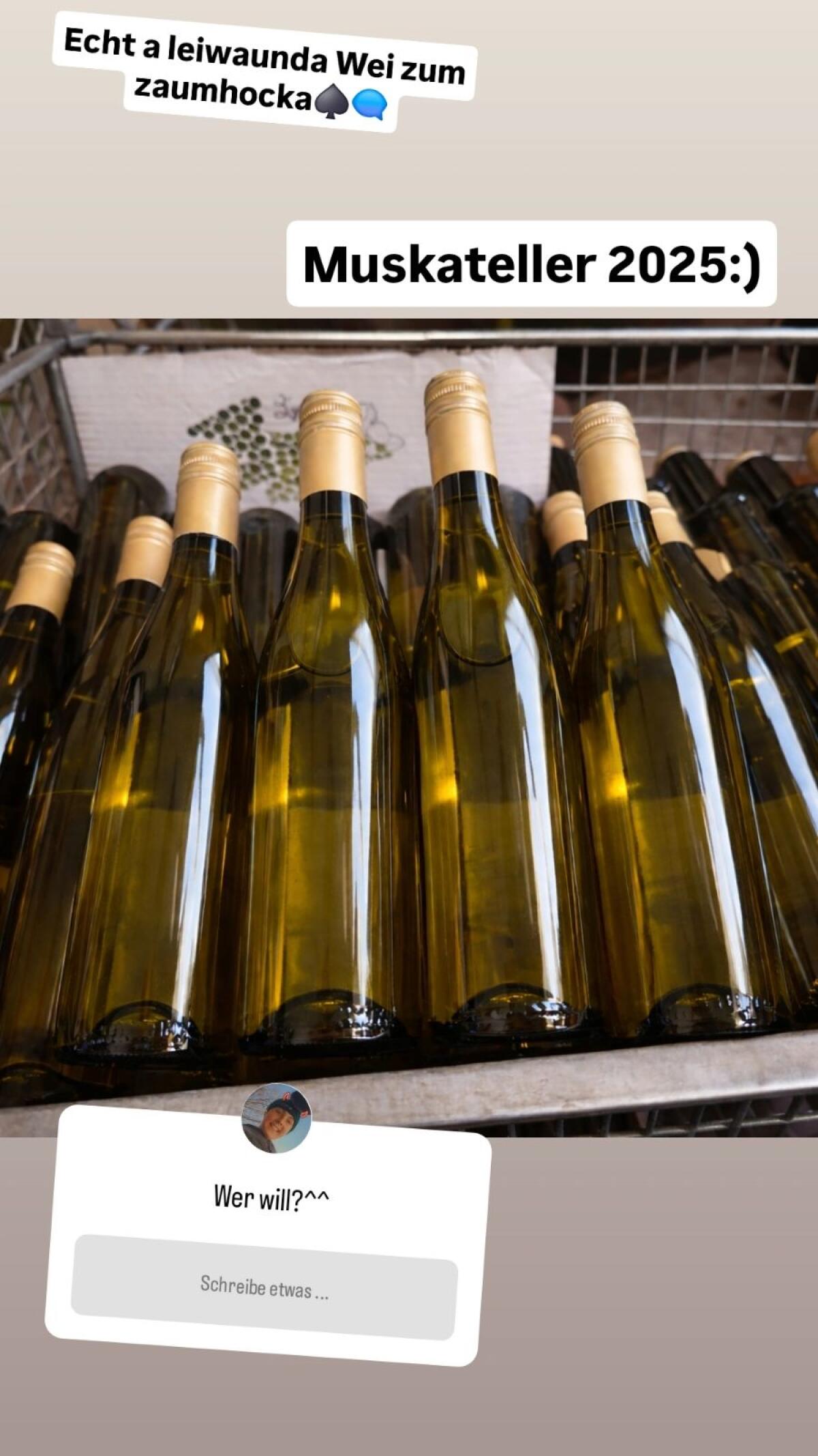 Muskateller 2025, fruchtig leicht, einfach perfekt. Im 3-, 6-, 12-Karton zu haben. Natürlich auch in größerer Menge. Gerne auch Versand.