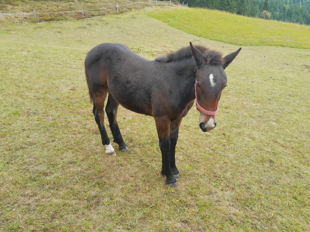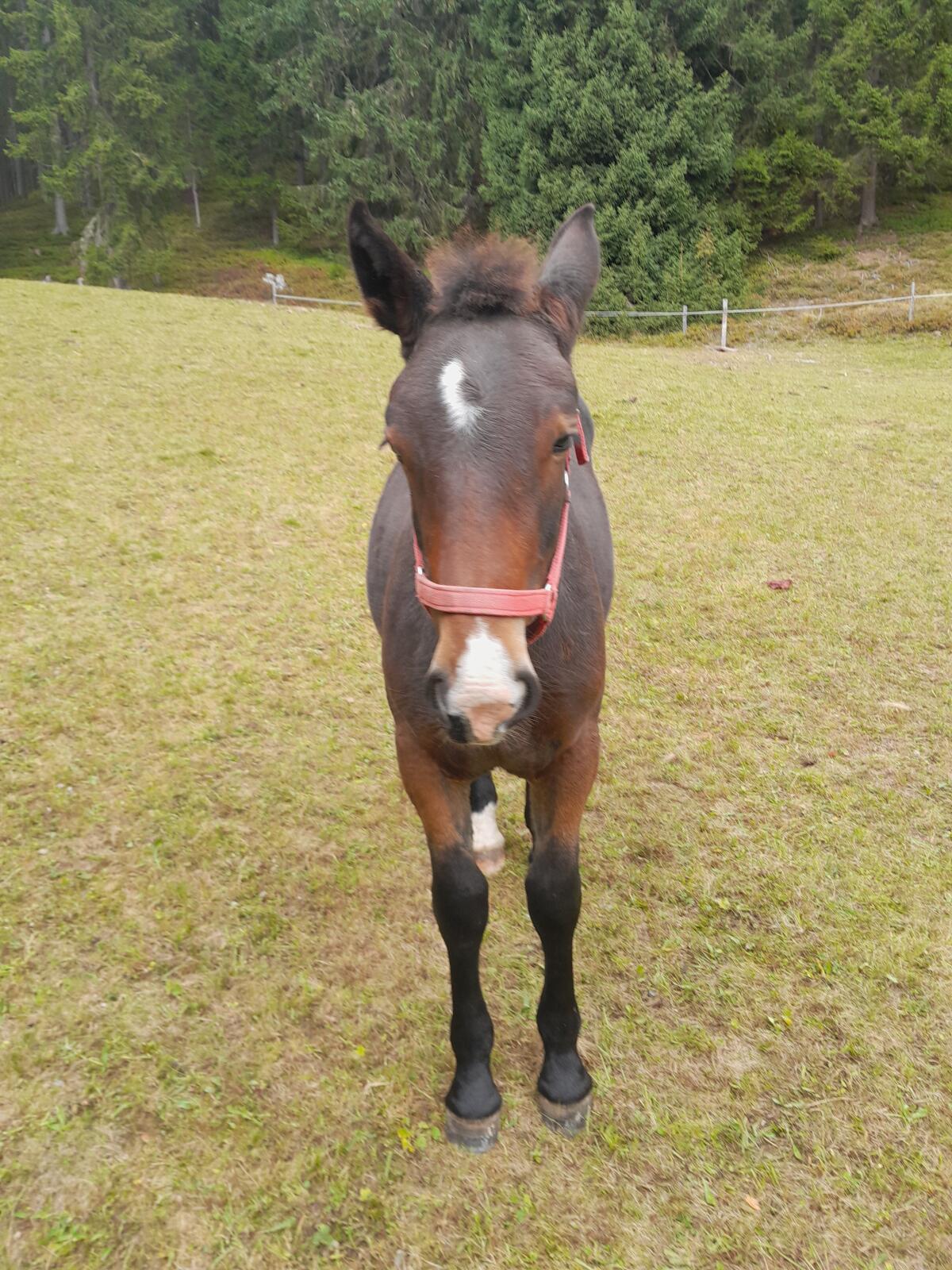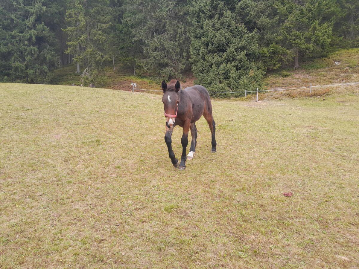 Schwarzbraunes Stutfohlen mit Stern und Nasenfleck nach Titanium Vulkan und Mutter Fischer Elmar, gute Bewegung. Bei weiteren Fragen einfach melden.