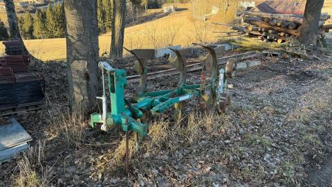 Rabe Star A XD, 4 Schar Wendepflug, Körperabstand 93 cm, Rahmenhöhe 80 cm, Gewicht ca. 1.000 kg, Streifenkörper, Scheibenseche, Pendelstützrad kann auch als Transportrad genutzt werden, dw Wendezylinder, 6 Stk. neue Eisen für Streifenkörper mit dabei, Pflug wurde von einer Werkstatt zusätzlich verstärkt. Standort Nähe Hollabrunn. Preis: € 3.500,-.