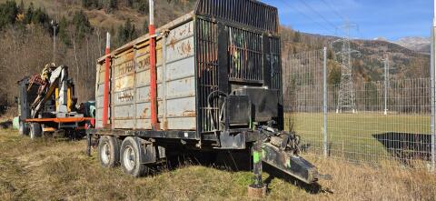 Verkaufe: Forstanhänger, 10 t Fahrgestell, 4-fach Druckluftbremse, 8,5 m Kran, Flap-down Abstützung, 2WD Antrieb, 1 Paar neuwertige Netzketten, 1 Paar gebrauchte Stachelketten, Weitwinkel-Gelenkwelle, Rungenverlängerungen. Hänger ist in einem guten und gepflegten Zustand. Preis ist inkl. MwSt.