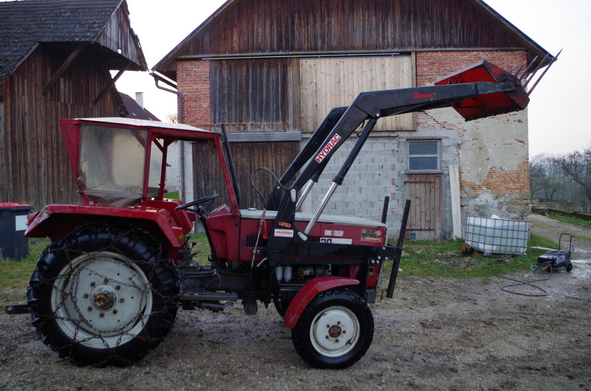 Mit Frontlader, läuft grundsätzlich, aber Gas lässt sich nicht gut regeln.