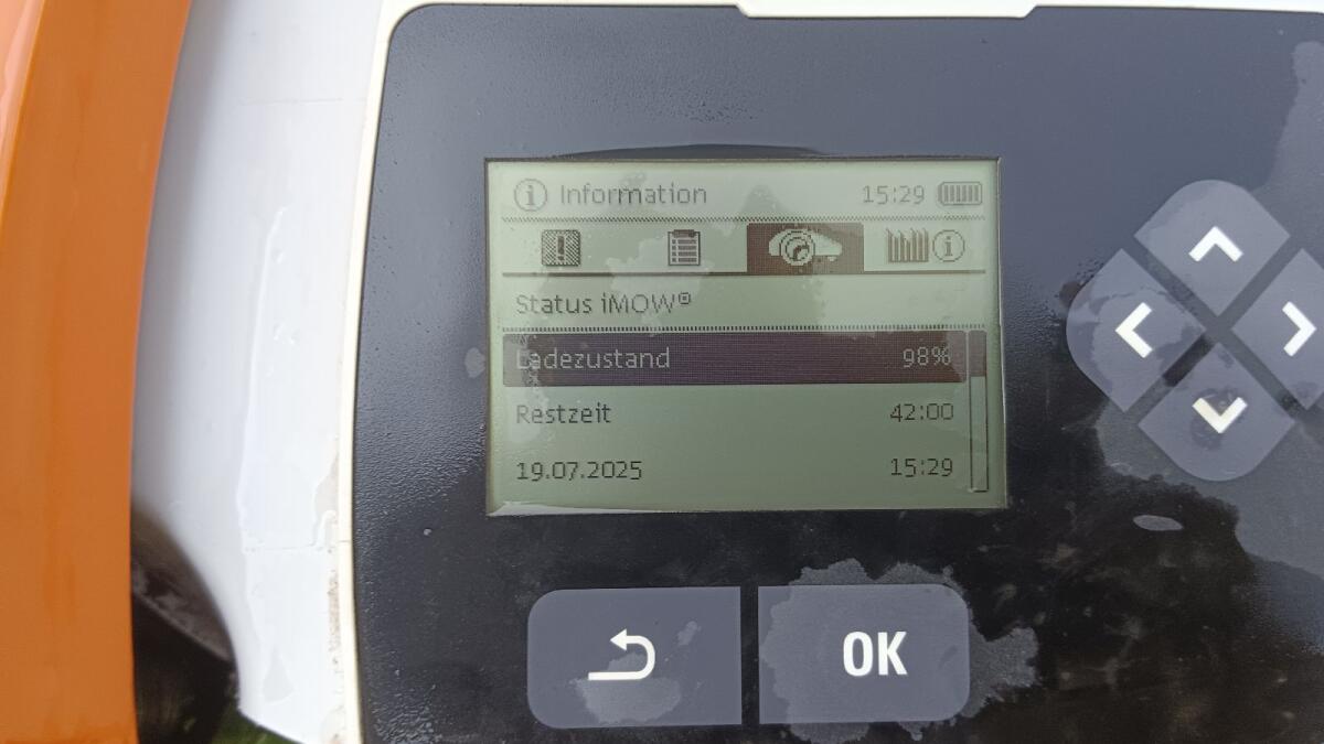 Ich verkaufe meinen iMow RMI 422 P Rasenmähroboter, kabelgebunden. Der Roboter wurde stets zeitgemäß gereinigt sowie gewartet (Messerwechsel, Softwareupdate, Frühlingscheck) und funktioniert deshalb einwandfrei. Der Mähroboter wird inkl. Dockingstation verkauft. Technische Daten: Optimale Fläche: bis ca. 850 m², maximal mögliche Fläche: bis ca. 1.500 m², Akku-Energie: 80 Wh, Akku-Typ: STIHL Li-Ionen Akku, Akku-Kapazität: 18,5 V, Schneidsystem: Mulch-Mähsystem, Schnittbreite: 20 cm, Schnitthöhe: 20-60 mm, Gewicht: 10 kg. Bei Fragen bitte gerne melden.